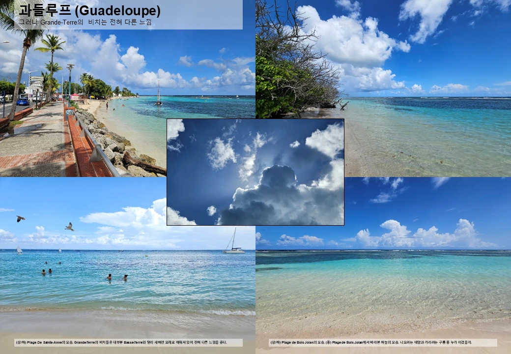 그런데 (예상했겠지만) 동쪽의 Grande-Terre 쪽 비치는 Basse-Terre 쪽과는 전혀 다른 모습이다. 하늘색 내지는 청록색 영롱한 바다와 새하얀 모래로 특징되는, 카리브해를 생각했을 때 머리 속에 떠오를만한 비치가 이어진다. 당연히 분위기도 훨씬 가볍다.