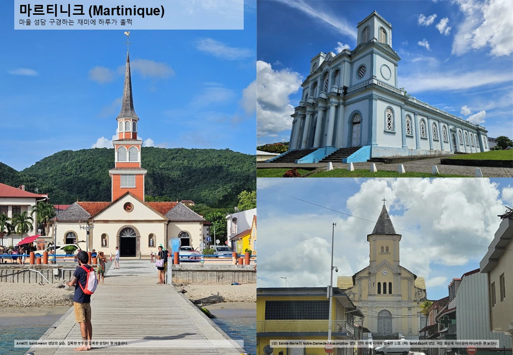 명동성당을 필두로 대부분의 성당이 차분한 벽돌 건물로 지어지는 한국과 달리, 마르티니크의 성당은 마을마다 다른 모습으로 다가와 여행의 즐거움을 더한다.
