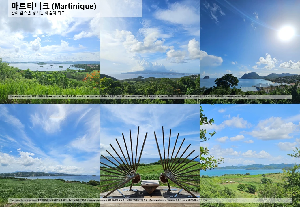 일단 어디를 다녀도 경치가 끝내준다. 딱히 전망대도 설치되지 않은 도로변인데도 이곳에서 내려다 보는 풍경이 가히 절경인 경우가 왕왕 있다 (단, 과들루프와 마르티니크 모두 운전 습관이 급한 편이니 도로변 정차 시 안전에 유의하자).