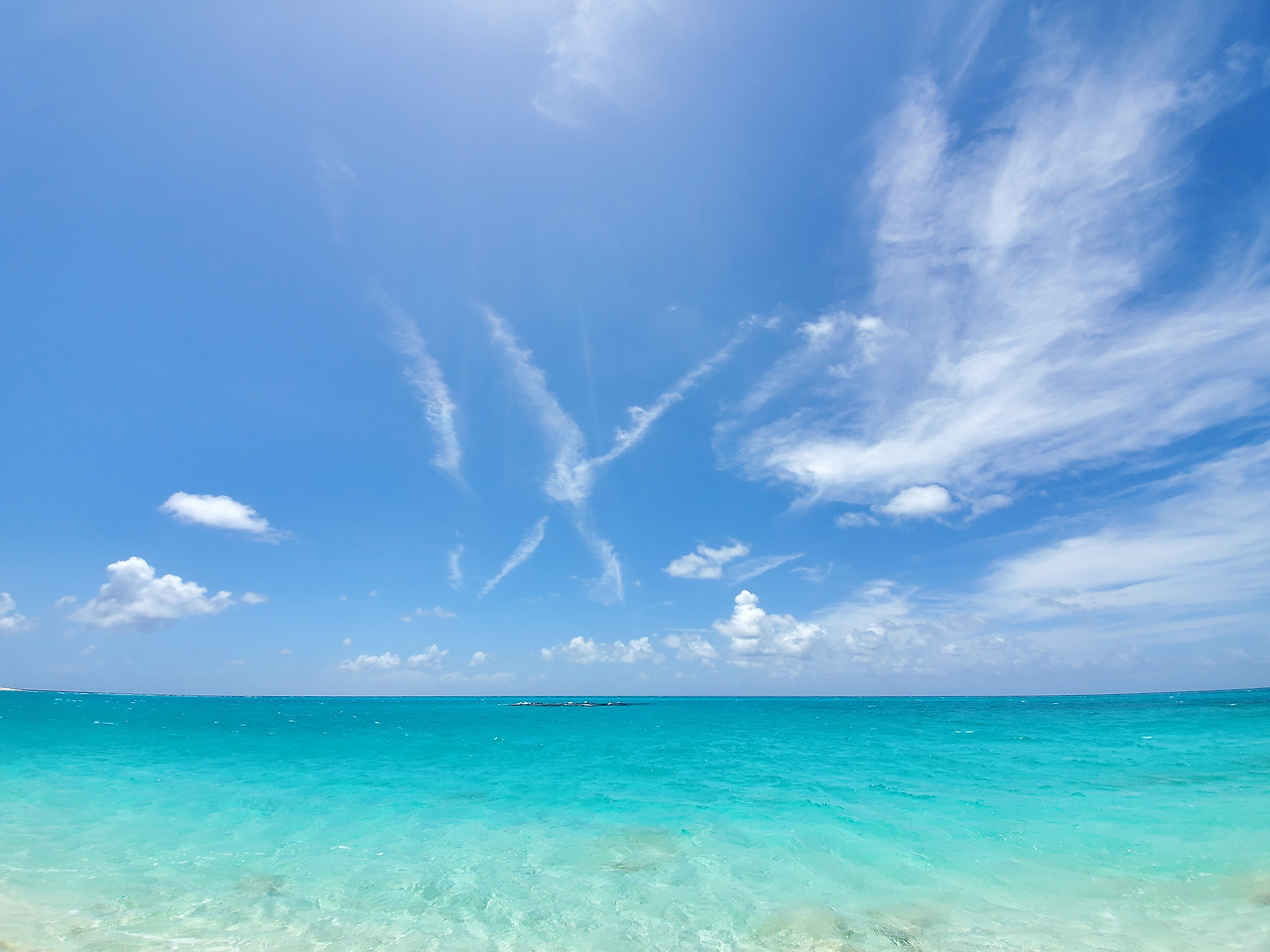 솔트 케이 북쪽 해변의 모습. 환상적인 모래사장이 펼쳐져 있고 그 뒤의 바닷물과 하늘의 모습이 신비감을 더한다.