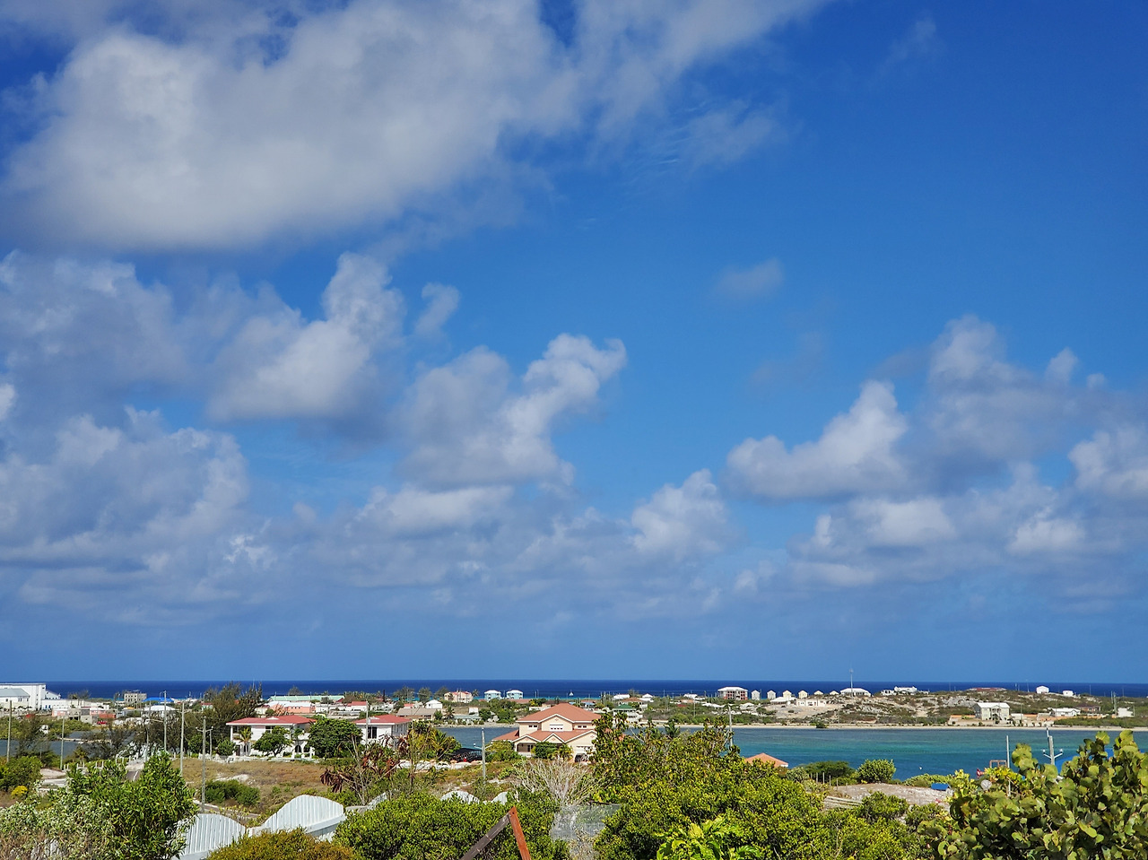 동쪽 고지대 (그래봐야 해발 25m 남짓이지만) 에서 바라본 코크번 타운 (Cockburn Town) 의 모습.