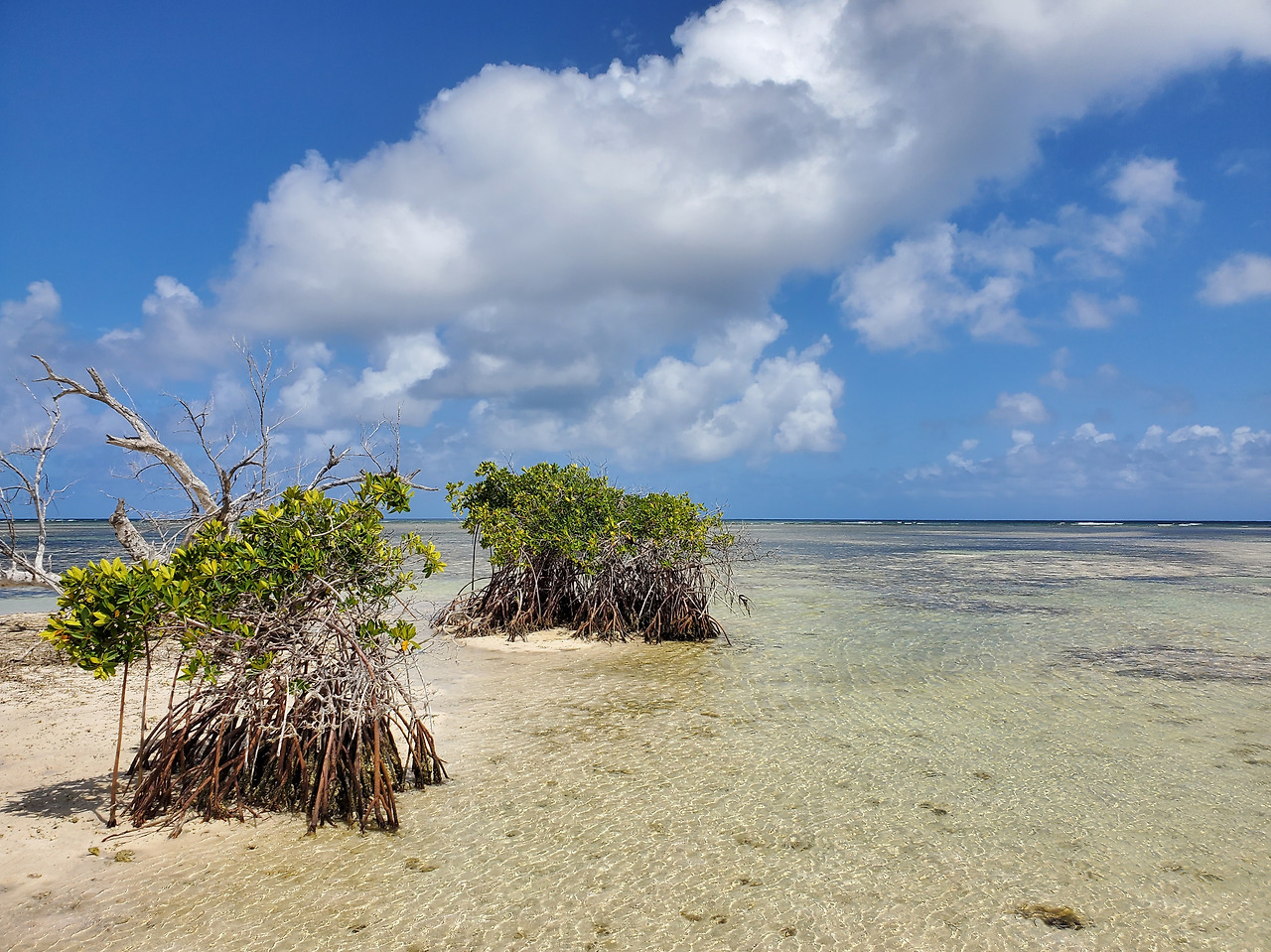 그랜드 터크 북쪽 해변. 한없이 얕은 해변에 맹그로브가 자란다. 동서남북 해변의 모습이 모두 판이하게 다른 것 또한 그랜드 터크의 매력일지도.