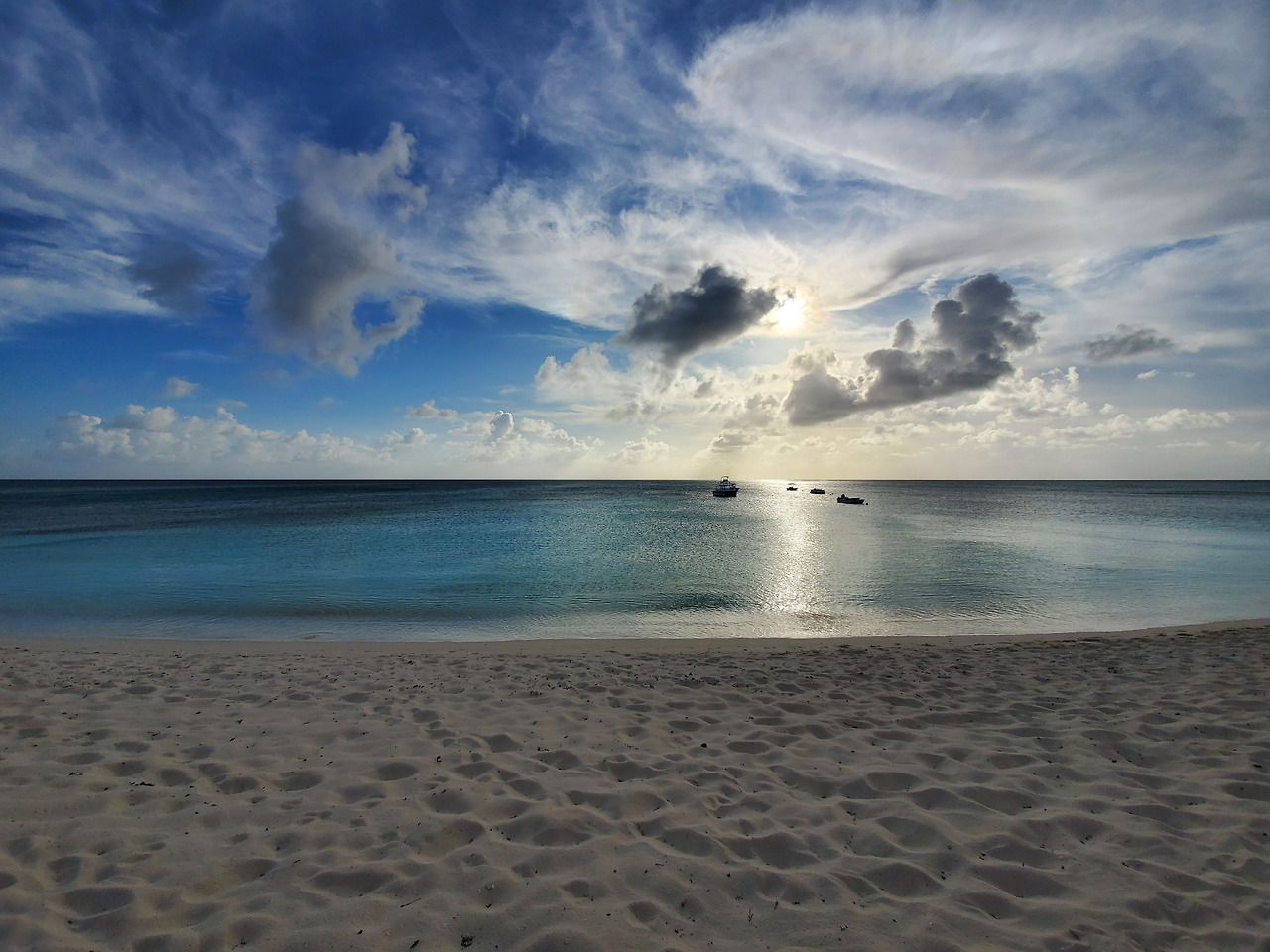 그랜드 터크 섬의 서쪽 해변의 모습. 이렇게나 부드러운 모래라니... 그런데 저 구름은 또 왜 이리도 아름다운지.