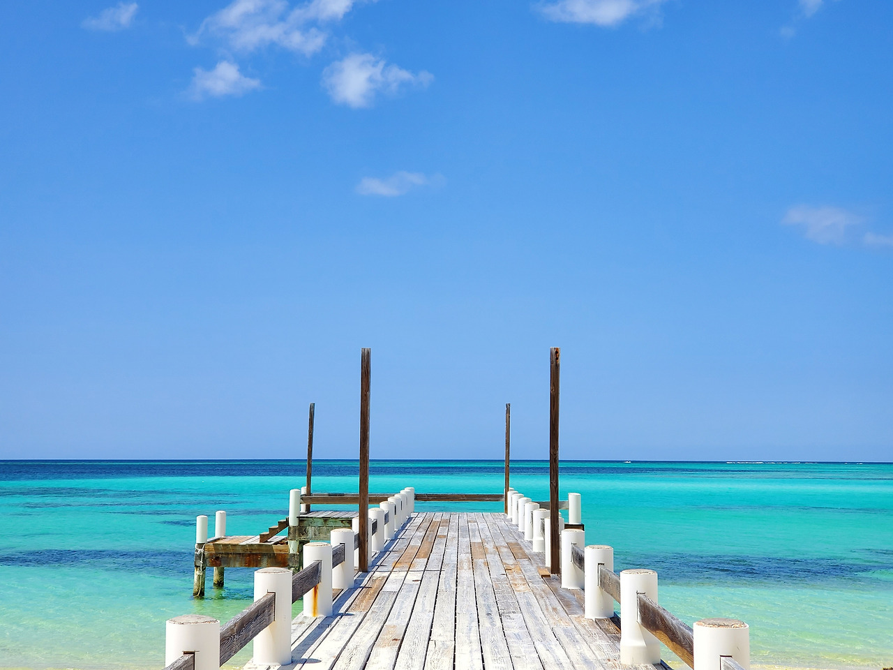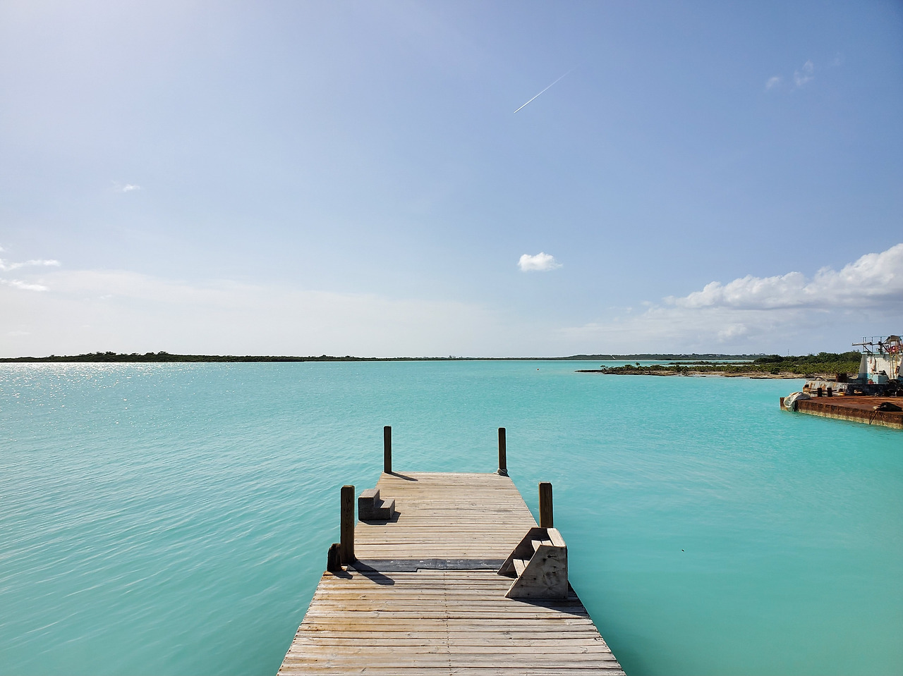 프로비덴셜스 (Providenciales) 에서 노스 케이코스로 출발한 페리는 이곳 Bellfield's Landing에 도착한다. 바다가 너무 평온하니 외려 초현실적인 느낌.
