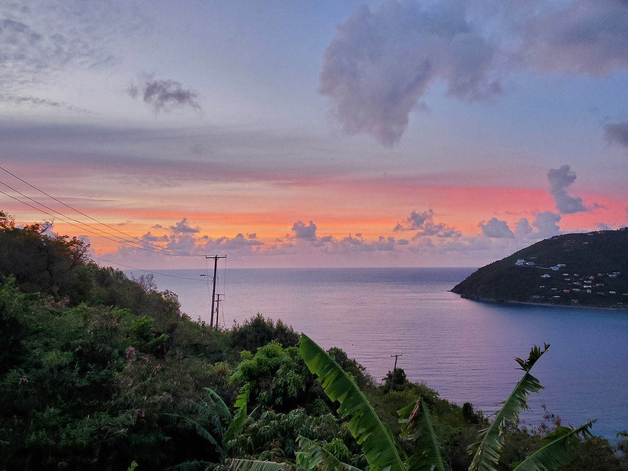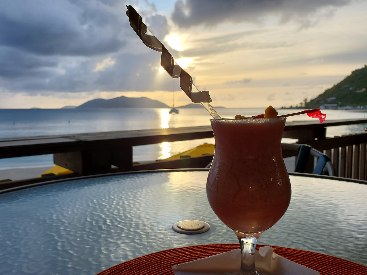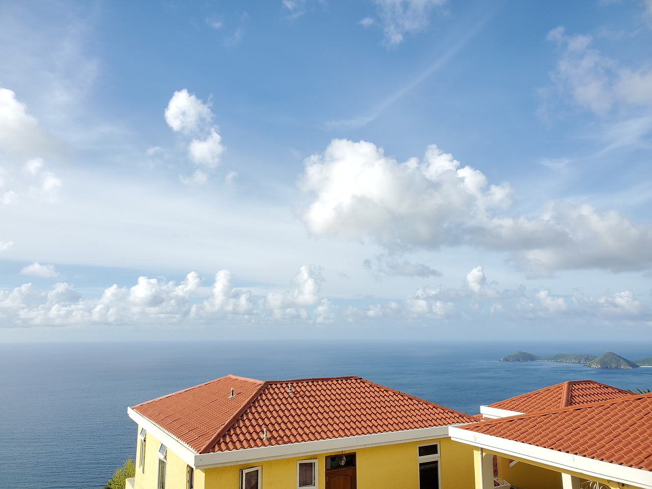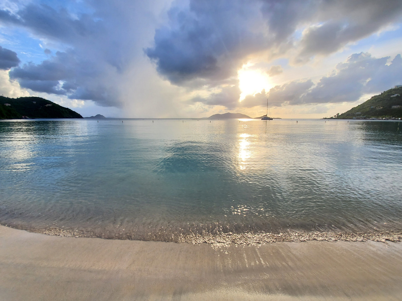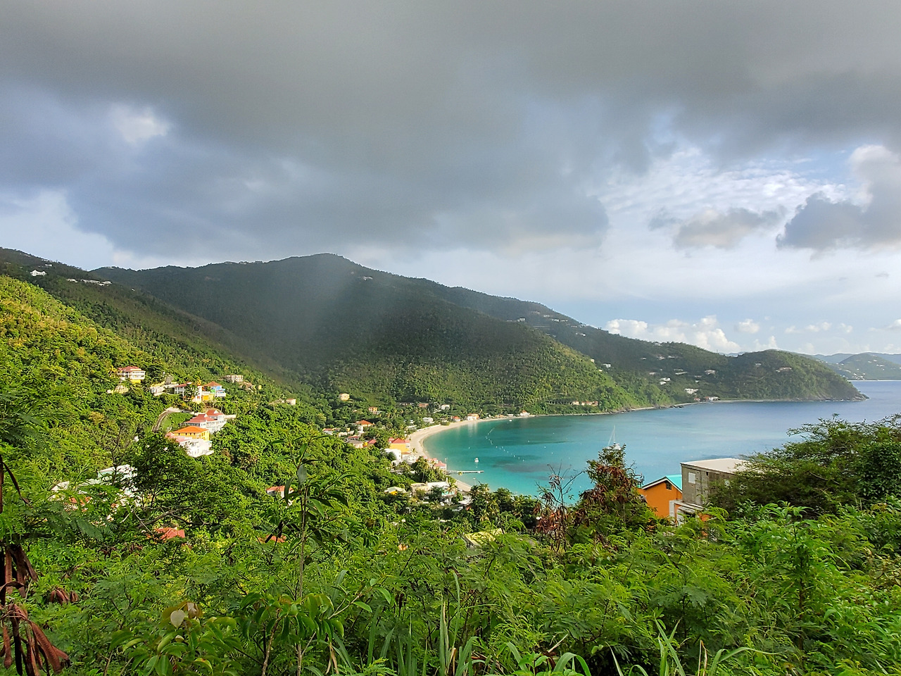Cane Garden Bay의 모습. 해가 쨍쨍한데 바로 앞 바닷가에는 구름이 비를 뿌리고 있는 모습이 신기할 따름.