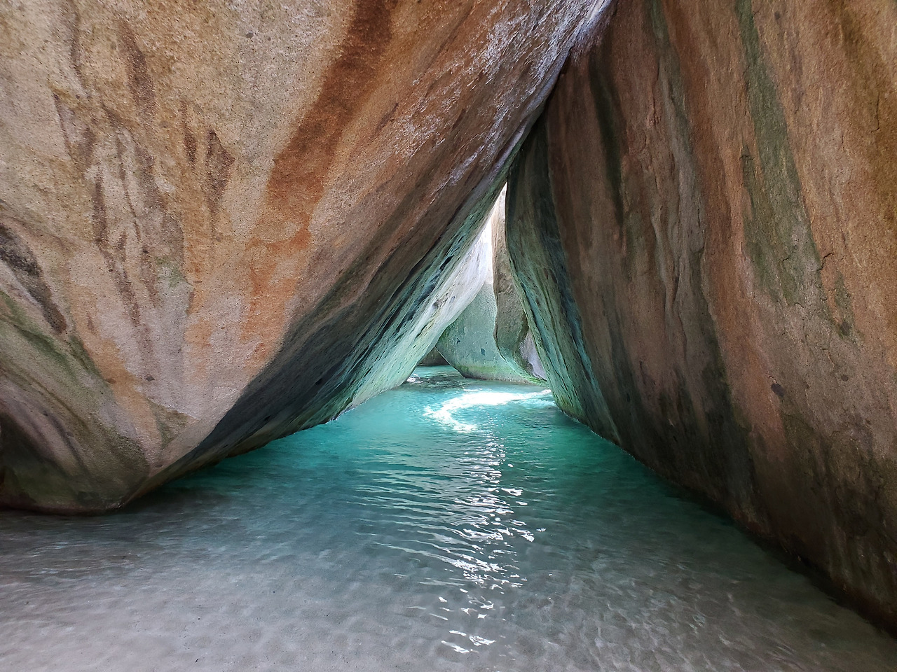 이렇게 홀린듯 걷다 보니, 바위 사이로 흘러들어온 바닷물이 흡사 지하 수영장을 만들어 두었다. 여기에 바위 틈으로 햇빛이 더해지니, 말로 설명할 수 없는 풍경이 완성된다