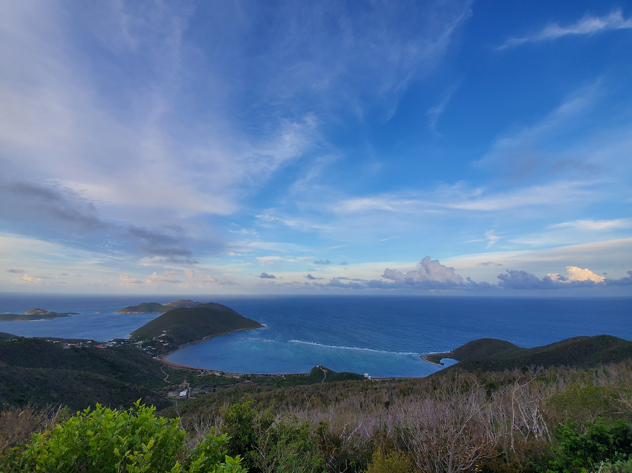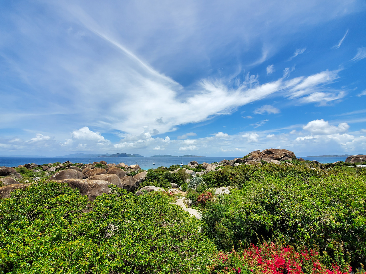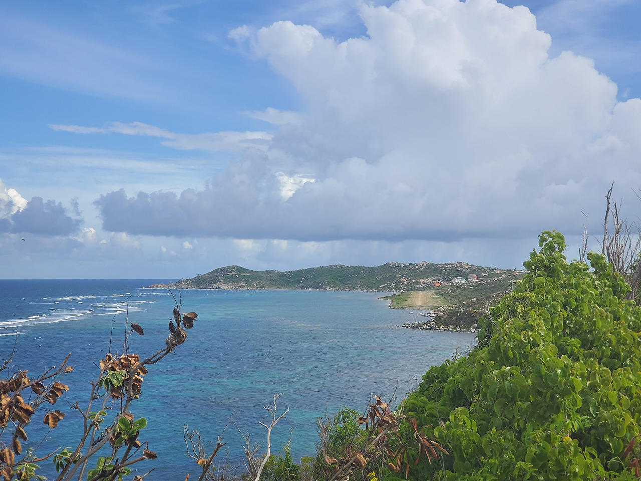 시원하게 펼쳐지는 하늘과 바다. 멀리 보이는 작은 섬들의 상당수가 사유지로, Richard Branson 등 거부가 매입하여 별장으로 쓰고 있다.