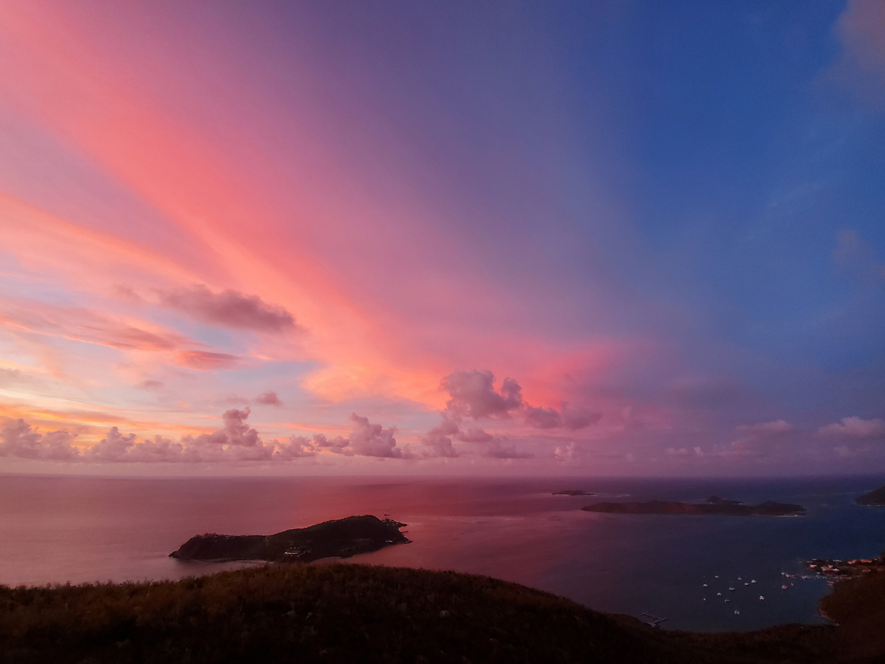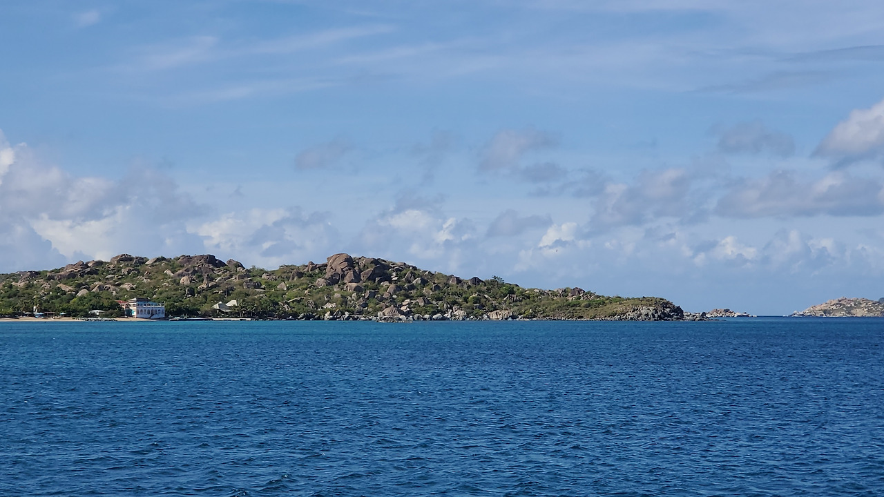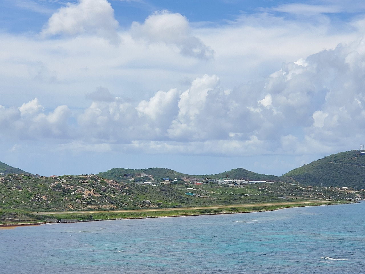 시원하게 펼쳐지는 하늘과 바다. 멀리 보이는 작은 섬들의 상당수가 사유지로, Richard Branson 등 거부가 매입하여 별장으로 쓰고 있다.