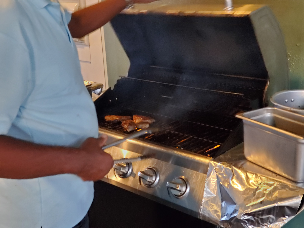그리고 시간 맞추어 부탁해둔 돼지고기와 치킨 바베큐도 지글 지글 익어가는 중.