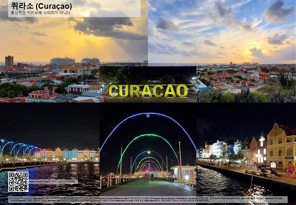 퀴라소의 느낌은 밤에도 이어진다. 잘 관리된 네덜란드풍의 시가지가 Sint Anna Bay를 사이에 두고 쭉 뻗어 있고, 양안을 Queen Emma Bridge가 연결한다. 그리고 그 옆으로 17세기 네덜란드 건축 양식으로 지어진 총독 관저가 위용을 뽐낸다. 그런데 이 모든 것들이 다 큼직큼직하다. 카리브해에서도 드디어 도시다운 도시, 야경다운 야경을 본 느낌이다.