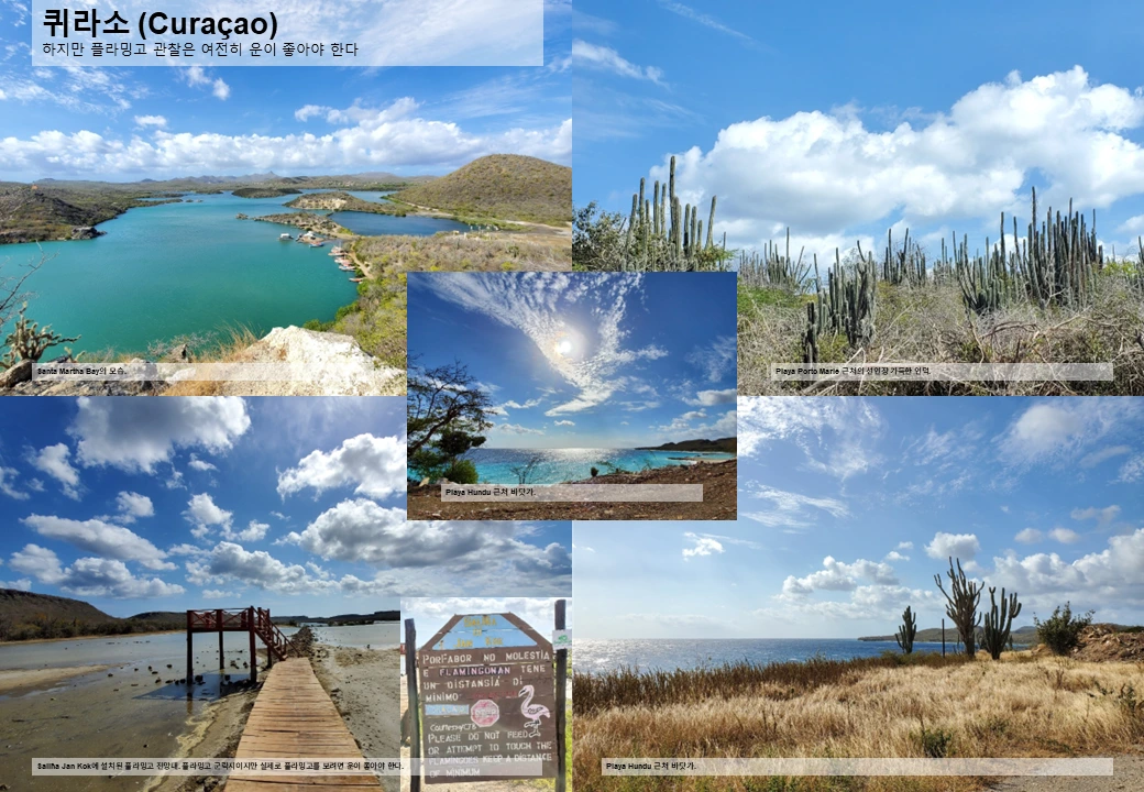 하지만 한 가지 운이 따라 주어야 하는 것이 있으니, 바로 플라밍고 관찰이다. 플라밍고 서식지에 가보면 제법 친절하게 안내문과 경고문까지 잘 붙여 두었는데, 정작 플라밍고가 없다. 아쉽지만 그렇다고 하염 없이 기다릴 수도 없고, 결국 전망대만 두어 번 오르내리다 차에 다시 오른다. 이 지역에서만 보네르에 이어 두번째. 플라밍고 관찰 운은 없었던 듯 하다.
