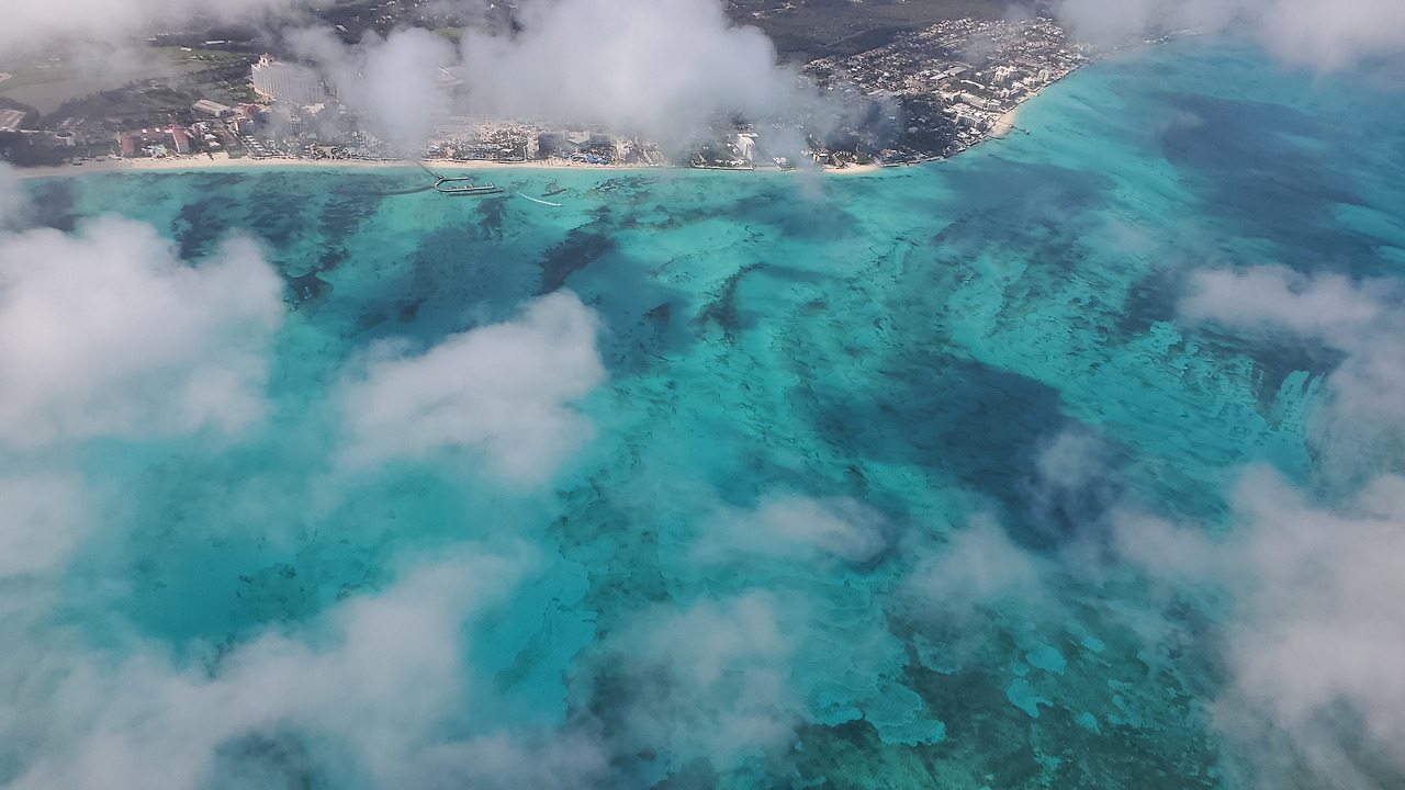나소 공항에 착륙 준비 중인 비행기가 뉴 프로비던스 섬 북쪽 Cable Beach 근처를 지난다. 얕은 바다가 자아내는 옥색 바다빛에 벌써부터 들뜨기 시작한다.