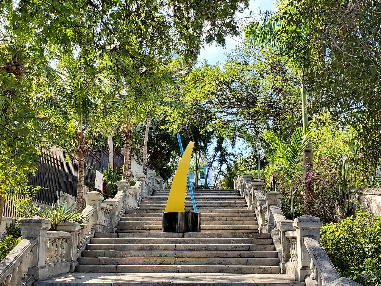 Frederick Street Steps의 조형물. 어딘지 이색적인데, 색깔은 딱 봐도 바하마 국기에서 따온 듯하다.