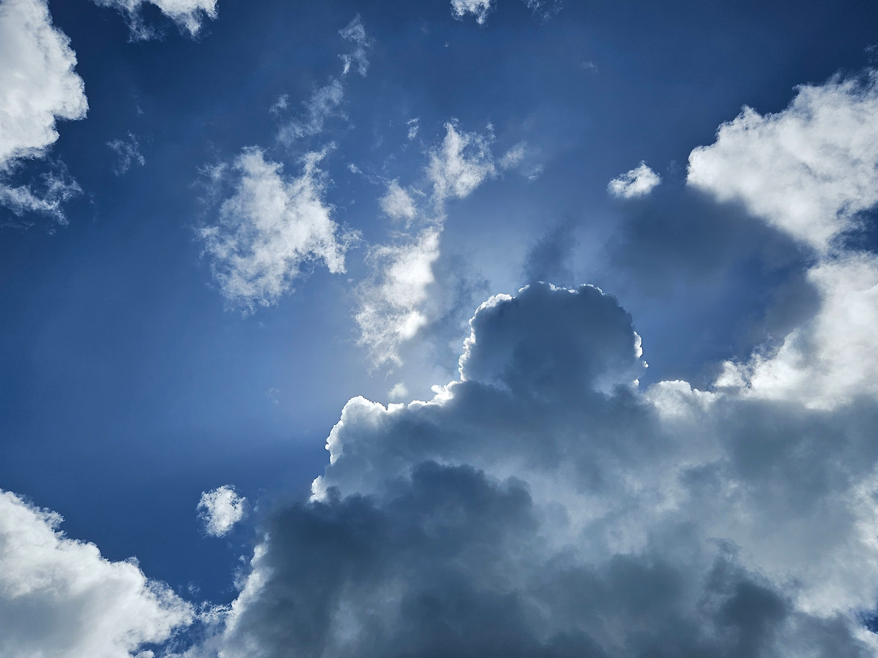 무심코 하늘을 쳐다보았다 우연히 발견한, 해와 구름이 싸우는 순간. 햇빛을 받아 가장자리가 밝게 빛나는 구름이 성스럽게 보일 지경이다.