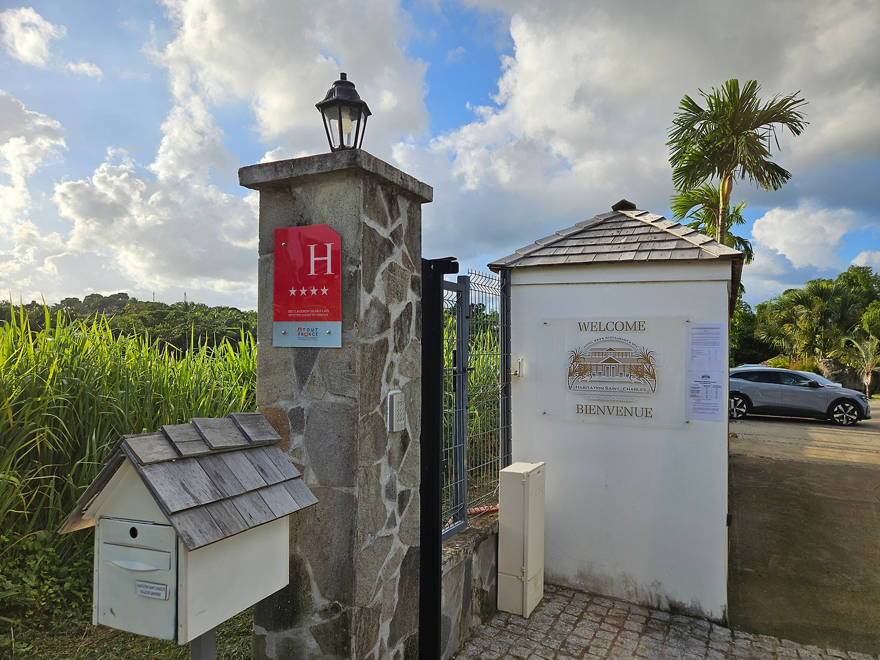 Marie-Galante와 Terre-de-Haut를 돌아보고 다시 과들루프로 돌아온 날. 이번에는 조금 더 고상한 호텔. 사탕수수밭에 안긴 플랜테이션 같아 이국적이다.