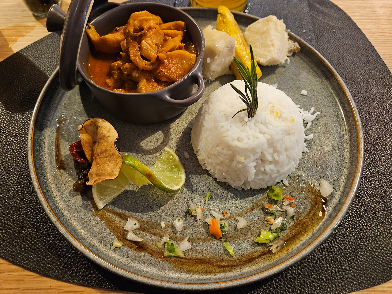 그래도 카리브해에 왔으니, 현지 요리를 먹어야겠지. 그런데 현지 식재료와 향신료 등등이 들어간 것은 분명히 맞는데, 프랑스 요리 기법이 섞인 느낌이다.