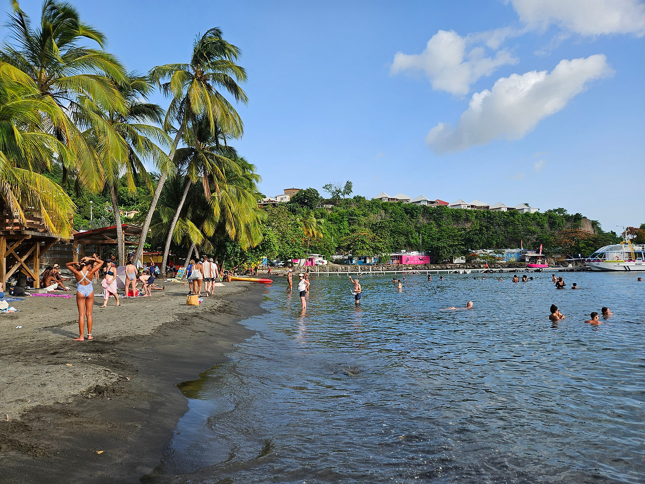 하지만 모든 해변이 저렇게 야성적인 것은 또 아니다. Grande Anse 해변의 경우 멀리서 봐도 확연히 밝은 색 모래.