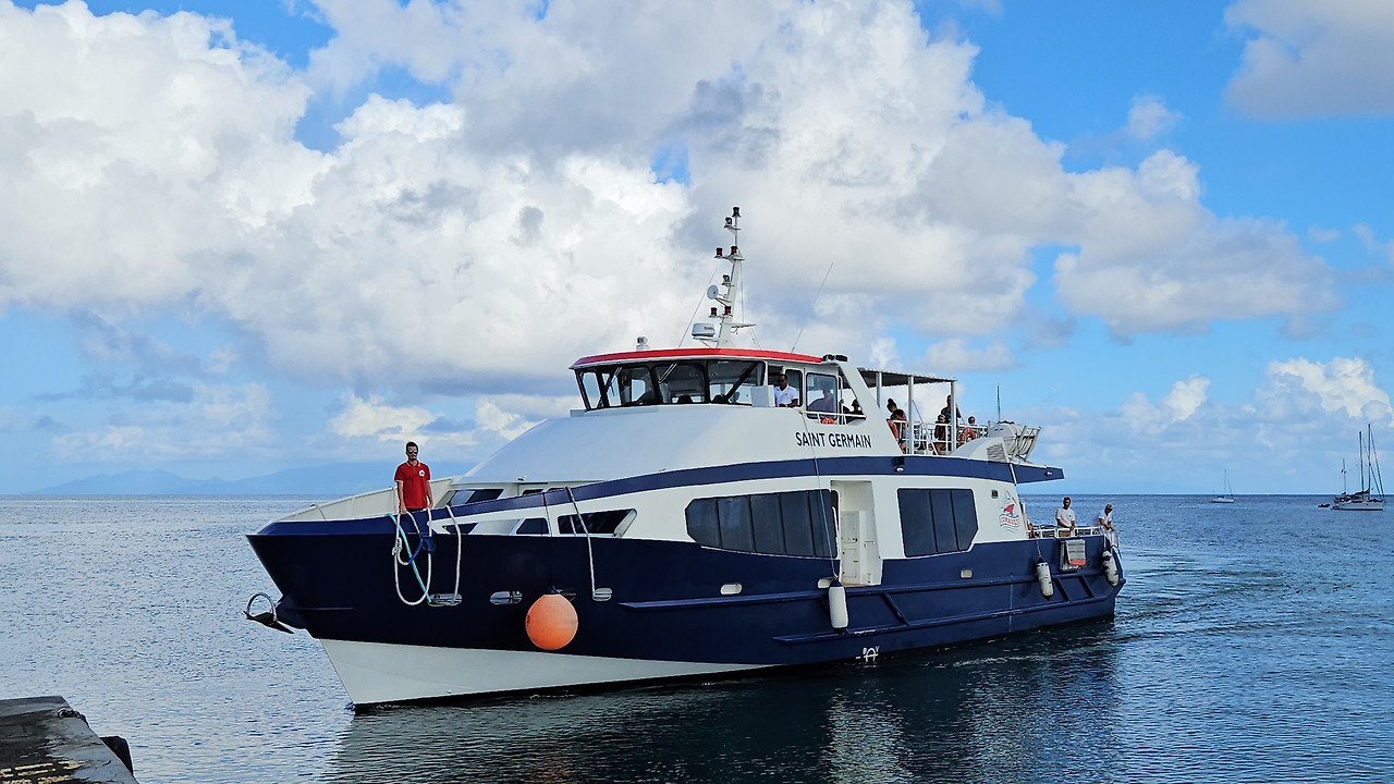 탑승 시간이 임박하자 저 먼 바다에서부터 배가 나타나 부두로 다가온다. 알고 보니 과들루프에서 출발한 배가 이곳을 잠시 들러 Terre-de-Haut까지 가는 것.
