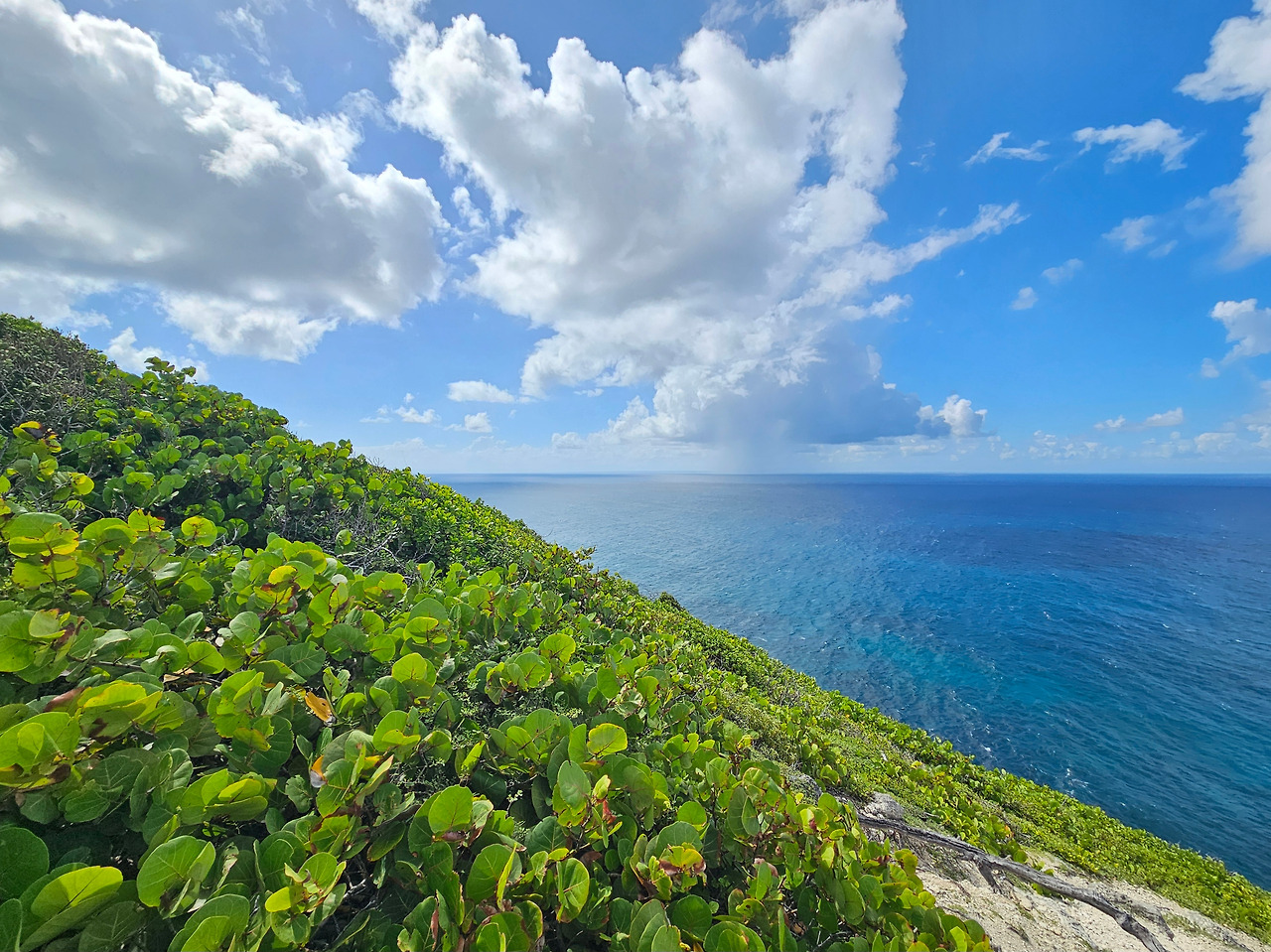 바다 건너 멀리 다른 섬이 보인다. 바로 Dominica 섬으로, 약 30km 떨어져 있다.