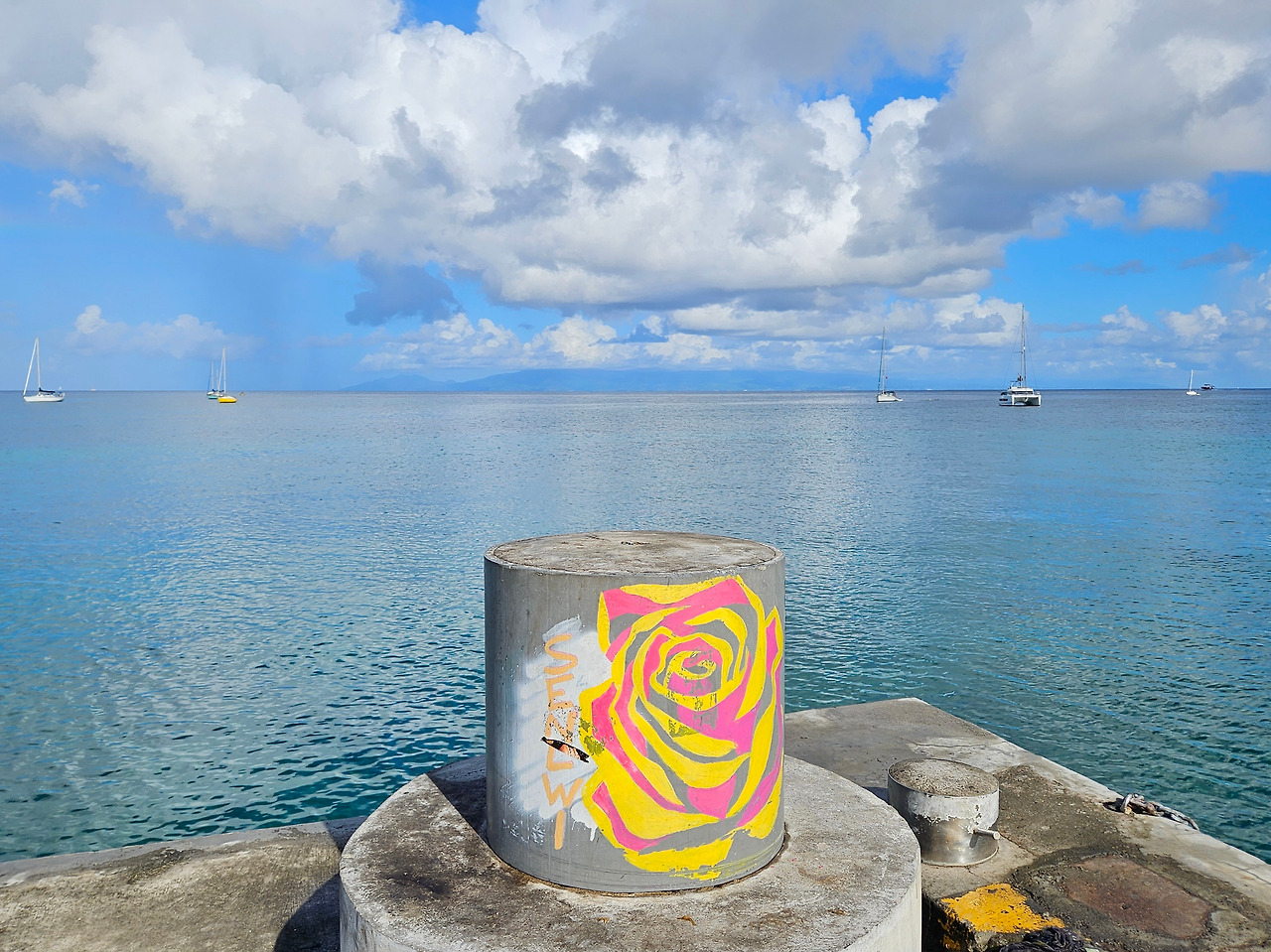 Saint-Louis 부두에 누군가가 예쁜 그래피티를 그려 두었다. 'Senlwi'라 적어둔 것은 아마 Saint-Louis의 크리올 발음이리라.