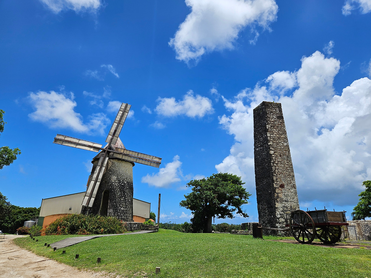 과거 사탕수수를 착즙할 때 사용했던 풍차도 잘 보존하여 남겨 두었다. 평탄한 지형이다 보니 바람이 센 대신 강 물살이 세지 않아 물레방아 대신 풍차를 쓰지 않았으려나.