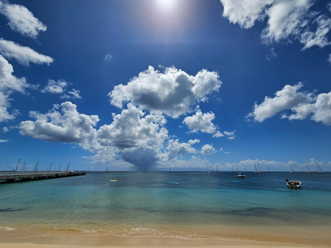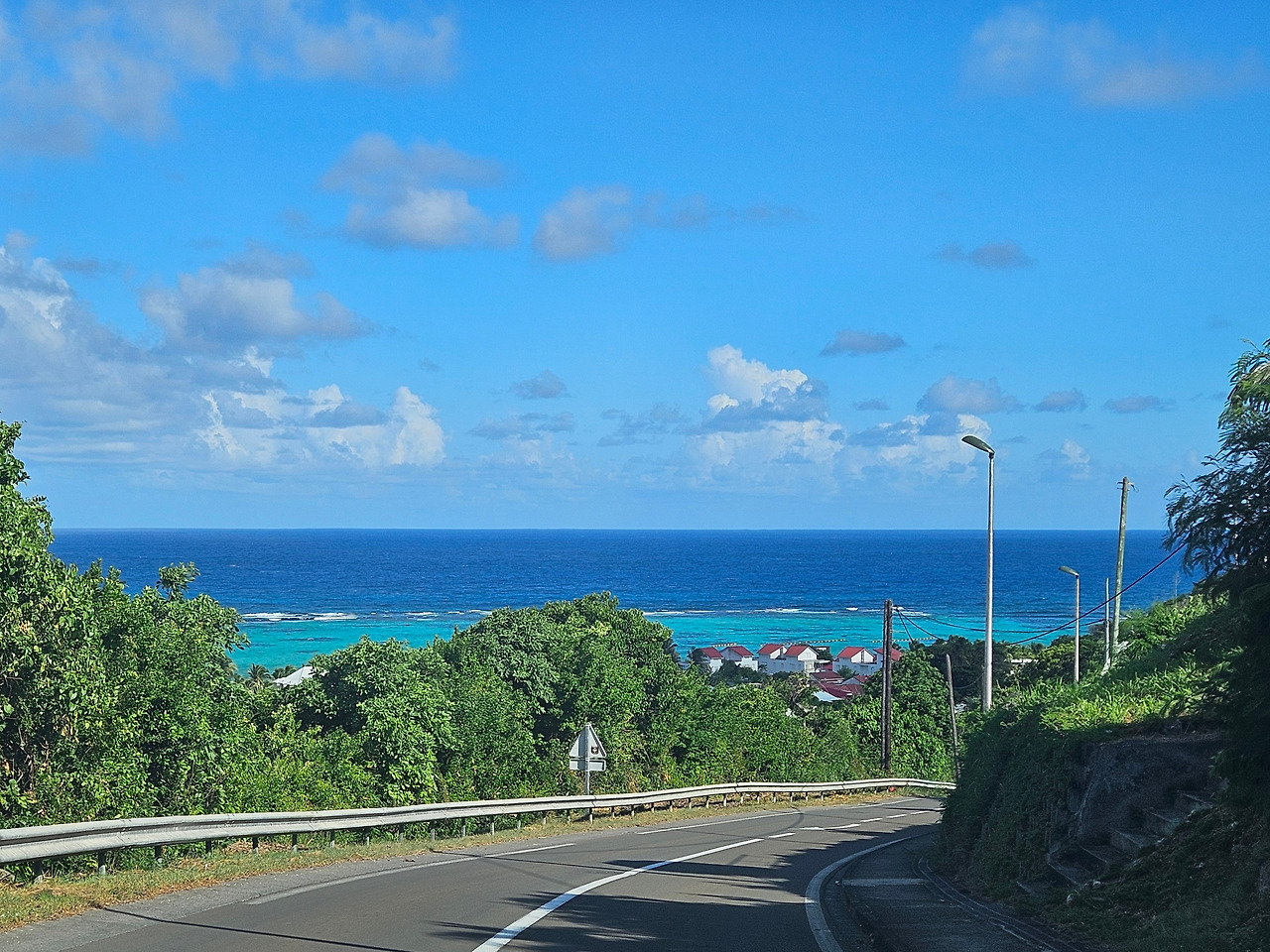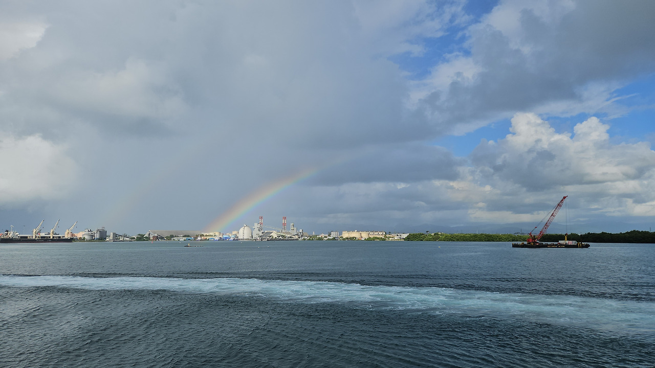 과들루프에서 마리 갈란트로 가는 아침 페리에 탑승했는데 (2025년 10월 기준 항공편도 존재하니 참고), 하늘에 겹무지개가 걸려있다. 마리 갈란트 여행을 축복해 주는 듯하다.