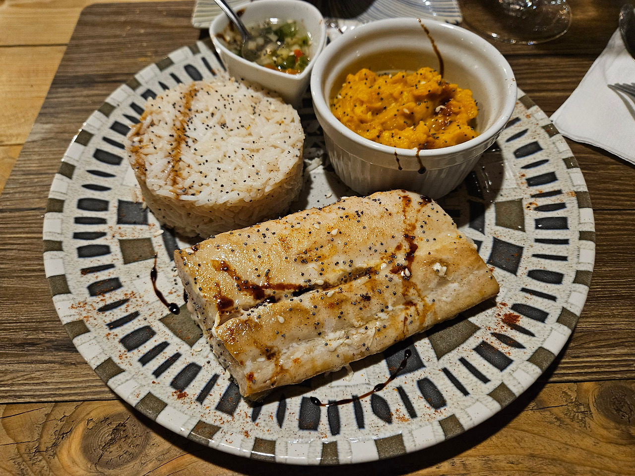 ... 생선 구이도 딱 맞는 익힘 정도로 든든하고 맛있게 배를 채워 주었다.
