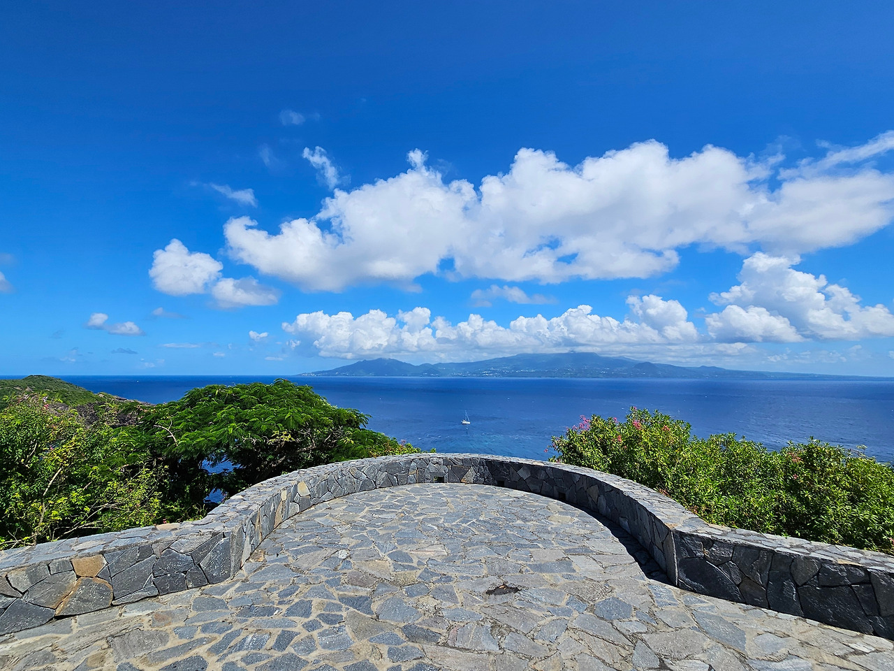 포장 도로라 해도 산길이 은근 가파른데, 중턱에 만들어둔 전망대가 새삼 고맙다. 전망대에 서니, 바다 건너 과들루프 섬이 잘 보인다. 하긴, 10km밖에 떨어져 있지 않으니.