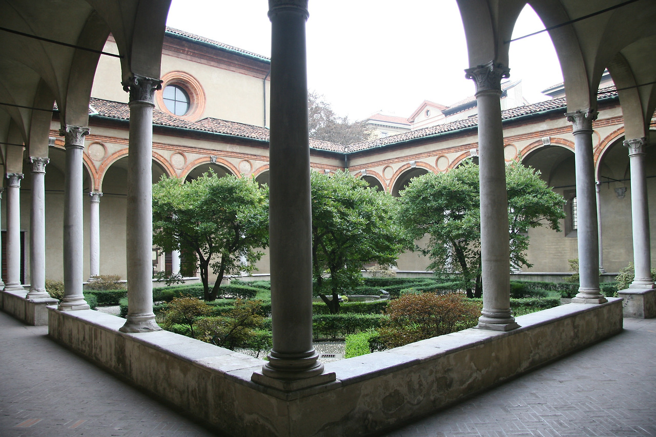 투어는 끝났고 사람들은 각자 제 갈 길로 흩어졌다. 아쉽고 허무한 마음이 들었던 나는 성당의 내부로 통하는 문을 살짝 열고 들어가 보았다. 정갈하게 관리된 아담한 정원을 중심으로 사각형의 건물이 자리하고 정원과 성당사이는 회랑(portico)으로 연결된 로마네스크 양식의 수도원이었다. 다 빈치의 벽화보다도 이 정원에 마음을 뺏긴 나는 카메라를 들고 이곳 저곳을 담기 시작했다. 고요한 정원에서 카메라 셔터소리만이 나의 존재를 알리고 있었다. 갑자기 안쪽 출입문이 열리더니 영화 ‘장미의 이름’에서나 볼 법한 수도복을 입은 할아버지가 한 분 바쁘게 걸어 나왔다. 이 정원에 외부인이 출입해도 되는지, 사진을 찍어도 되는지 알 길이 없었던 나는 카메라를 얼른 내리고 최대한 공손한 미소를 지으며 한쪽으로 비켜섰다. 혹시 들어오면 안된다고 야단 맞을까 봐 조마조마하기도 했다. 하지만, 수도사님은