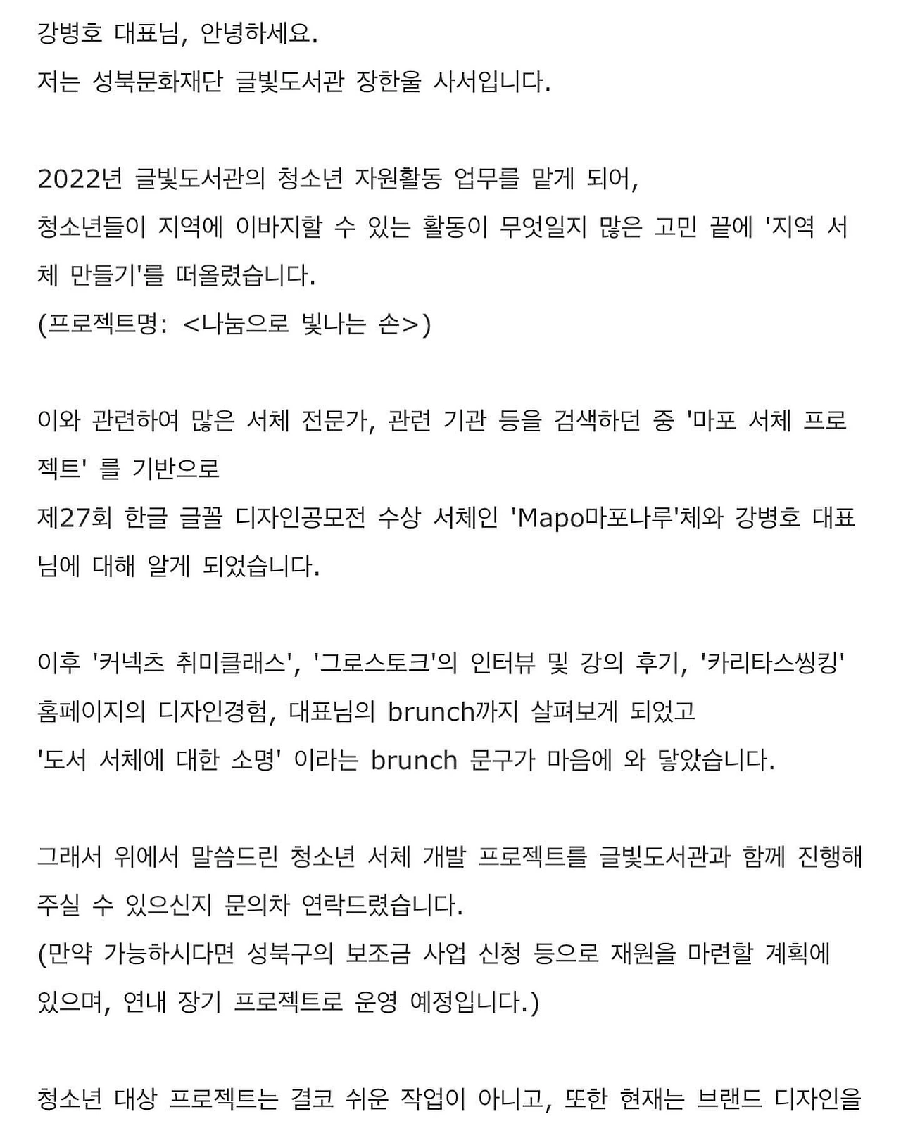"어라? 이게 유료 서체야?" 하며 법무법인에서 발송한 글씨체 저작권 관련 공문을 당황스럽다며 찍어서 보내시는 분들도 계세요. 글씨체 이름을 알려드리면 뿌듯하고, 모르면 부끄러워지고, 모르는 서체는 끝까지 찾아보고 외워두게 돼요. 법무법인 공문은… 혹시 아는 서체 회사에서 보낸 공문이면, 제가 대신 연락해서 더 나은 방법은 없는지 물어도 봐드리고요.