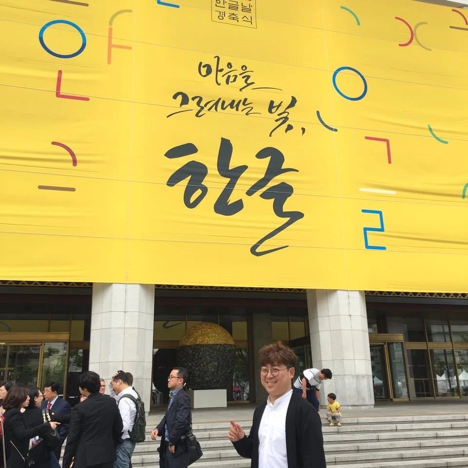 571돌 한글날 경축식 준비하는 주최 측의 연락을 받고 저에게 다시 전화 주신 윤디자인그룹의 김윤희 차장님(지금은 부장님)은 제가 퇴사한 직원이지만, 저에게 도움이 될 일이라 생각하셨던 것 같습니다. (감사함을 표현하지도 못해왔네요.) 주최 측인 포유컴 이은영 부장님께서는 이번에도 잘 써주시면 좋겠다고 의뢰해주셨습니다. 곧장 사무실에서 써서 드렸고, 이번에도 문화체육관광부에서 반응이 좋았다고 말씀 주셨어요.