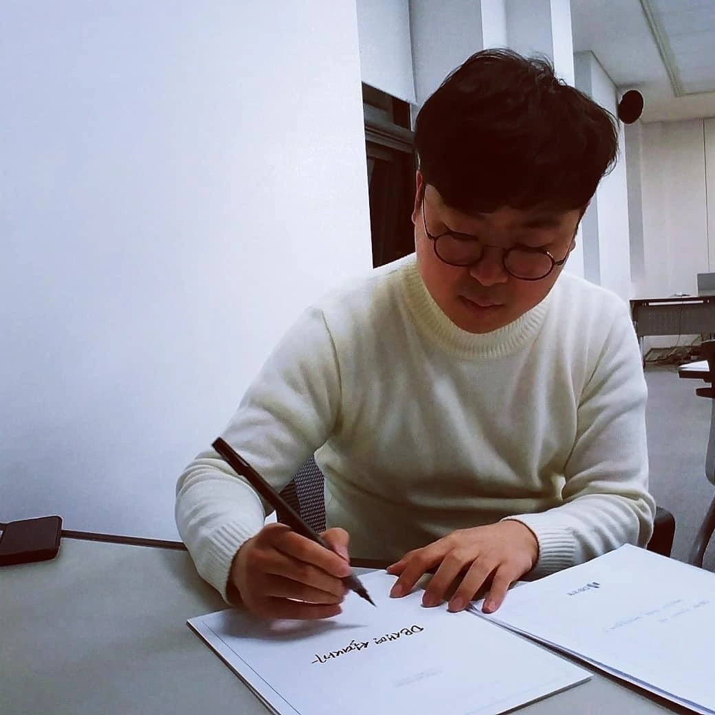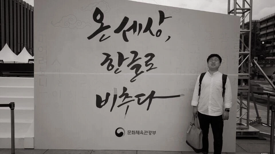 “병호씨, 작년에 문화체육관광부 한글날 경축식 행사에 캘리그래피를 쓴 사람을 찾고 있다고 연락이 왔어. 그때 그거 병호씨가 쓰지 않았어?”