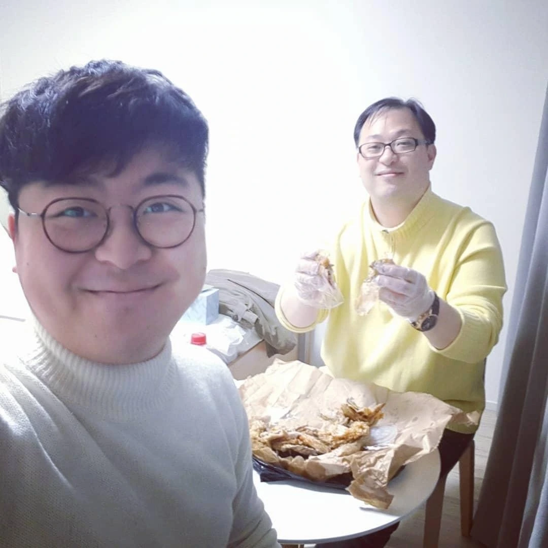 콘퍼런스 때는 선물을 만들기 위해 저는 글씨를 쓰고, DB생명 강석진 팀장님, 차병선 과장님, 박현준 과장님, 신철호 과장님, 장재혁 대리님은 함께 액자에 넣으셨었습니다. 그날 저녁엔 치킨을 사서 제자에게 찾아오신 MCA경영컨설팅 이주열 대표님과 사진도 남겼어요.(이 글을 쓰는 지금이 4월 10일, 딱 4년 전 오늘이네요.)