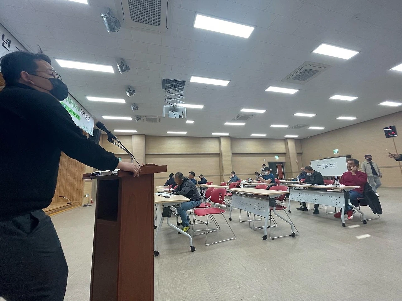늘 웃음 포인트가 되던 일화를 소개했습니다. 그동안 어딜 가도 늘 웃으며 지나던 구간인데 아무런 반응도 없으셨고, 더 나아가 이장님은 제일 앞에 앉으셔서 “아휴~”하는 야유의 목소리까지 더하셨습니다. ‘뭐 이런 강사가 왔나’하는 태도로 마스크를 쓰셨으면서도 그 위에 손을 대시곤 하아암~ 하품을 크게 하셨어요.