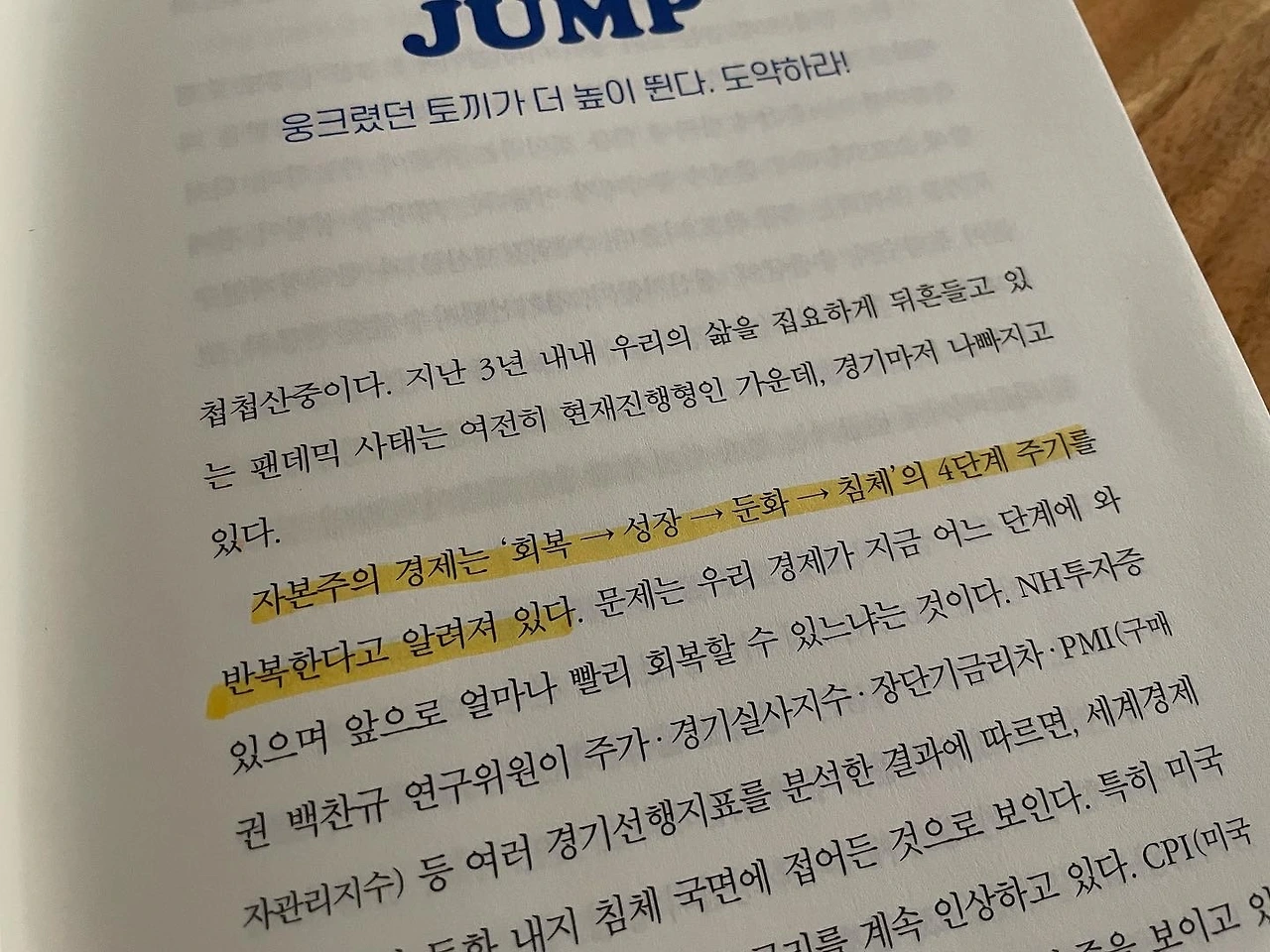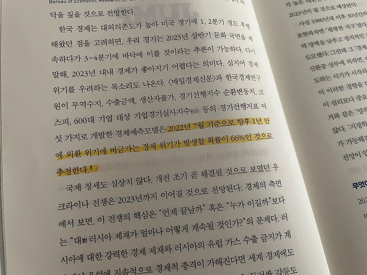 ‘자본주의 경제는 회복 - 성장 - 둔화 - 침체의 4단계 주기를 반복한다고 알려져있다. 2022년 7월 기준으로 향후 1년 안에 외환 위기에 버금가는 경제 위기가 발생할 확률이 66% 인 것으로 추정된다. 하지만 불경기라고 해서 무조건 소비가 위축되는 것은 아니다.’ 5,6p