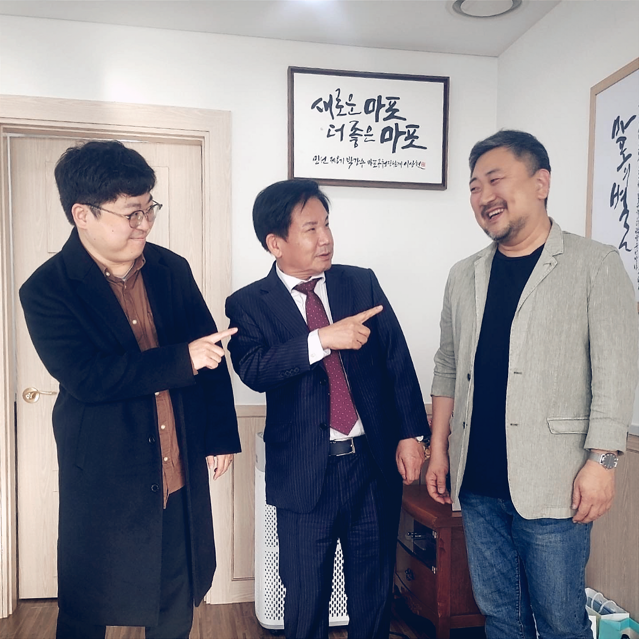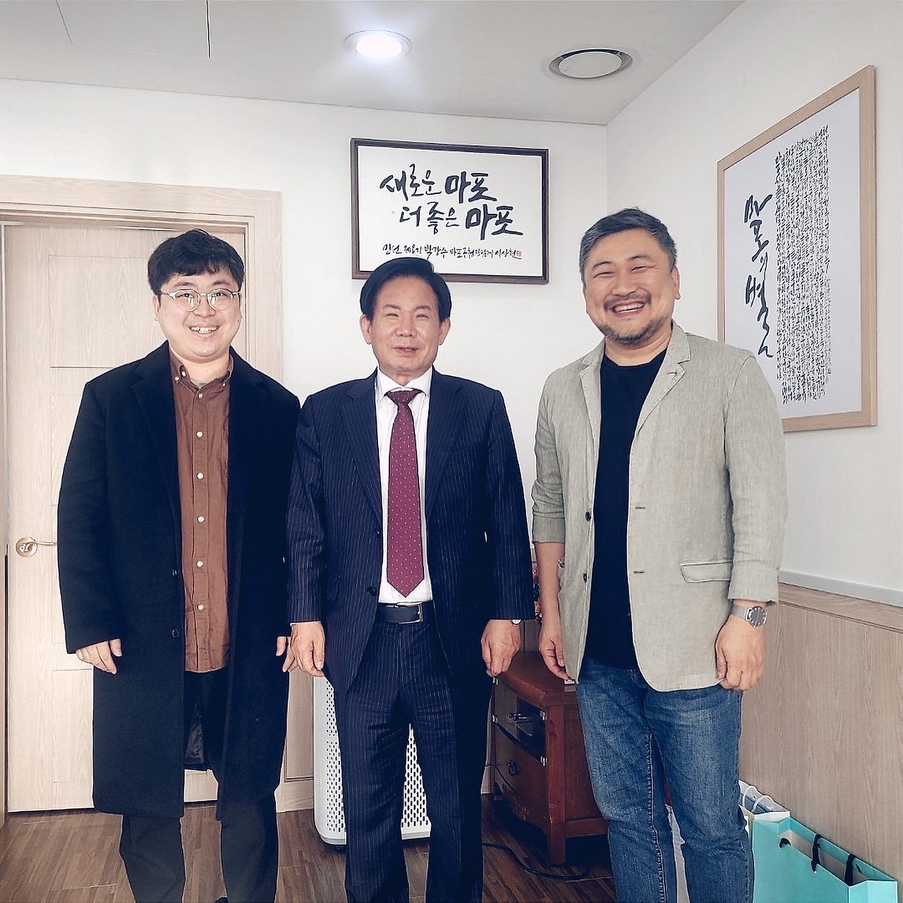 오늘은 마포구 구민인 ‘대한민국 캘리그라피 1호 작가’ 이상현 선생님과 함께 내가 살고 있는 마포구에 일을 의뢰받은 날이다. 회의 전에 틈이 나서 이상현 선생님께 지금은 널리 사용되고 있는 강원도 정선군 정선 아리랑 서체 개발 이야기를 듣는데 너무 재밌었다.