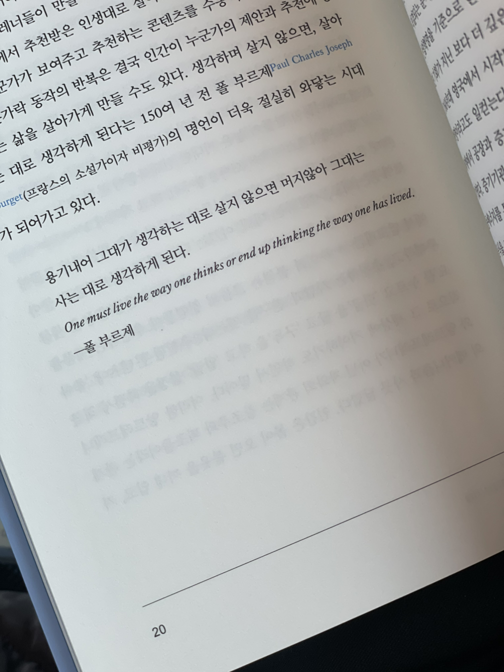 용기 내어 그대가 생각하는 대로 살지 않으면 머지않아 그대는 사는 대로 생각하게 된다.