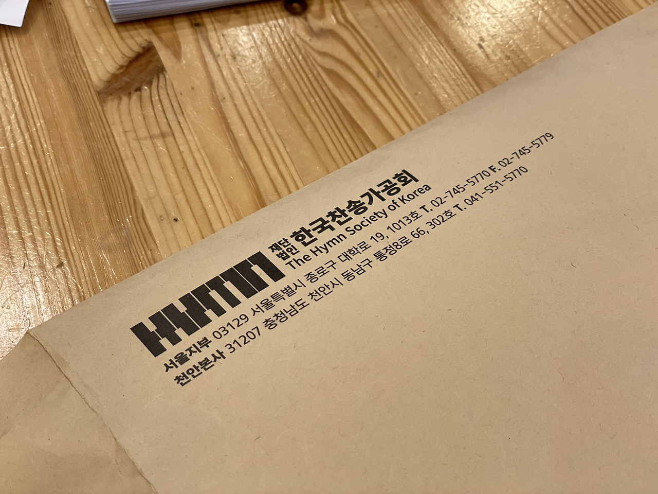2018년에 디자인 대학원 IDAS를 다니면서 한국찬송가공회의 로고 디자인을 했었다. 찬송(Hymn)이랑 피아노가 보이게 만들었다. 하프도 그리고, 음표도 그리다가 결국 피아노로 마무리했었다. 잘 사용하고 계셨다.