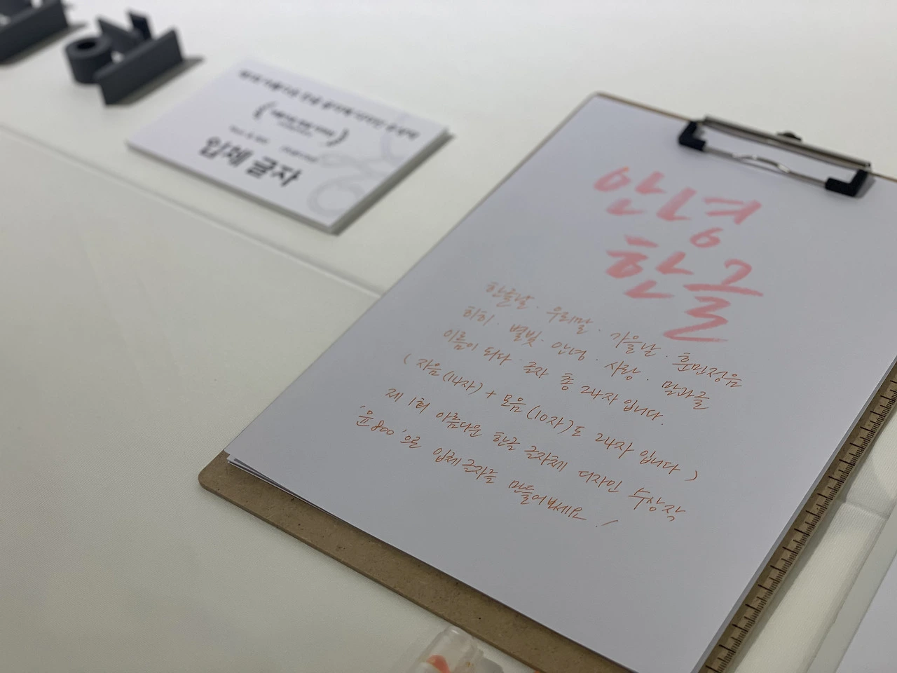 사단법인 한국폰트협회가 이를 주관하게 되었다. 그 과정에서 심사, 전시, 시상식, 세미나까지 한글을 둘러싼 산업과 문화의 접점을 가까이에서 경험했다. 내일은 부여군과 영월군에서 만든 서체가 K-Design Award를 수상하며 또 한 번의 의미 있는 시상식을 경험하게 된다.