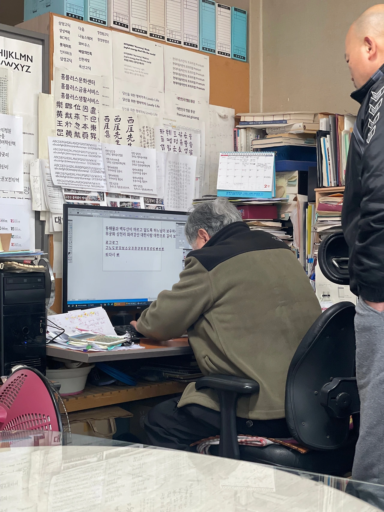 어제 오전에 만난 김진덕 서체 디자이너는 도안과 학부시절 레터링 수업을 좋아해 김교만 교수님 연구실에서 1984년에 일을 시작하셨고 1958년 생이시니 올해로 69세셨습니다. 저는 “리을 보다 기역이 더 낮아야 하나요?“ 라고 서체를 검수하며 여쭤봤습니다.