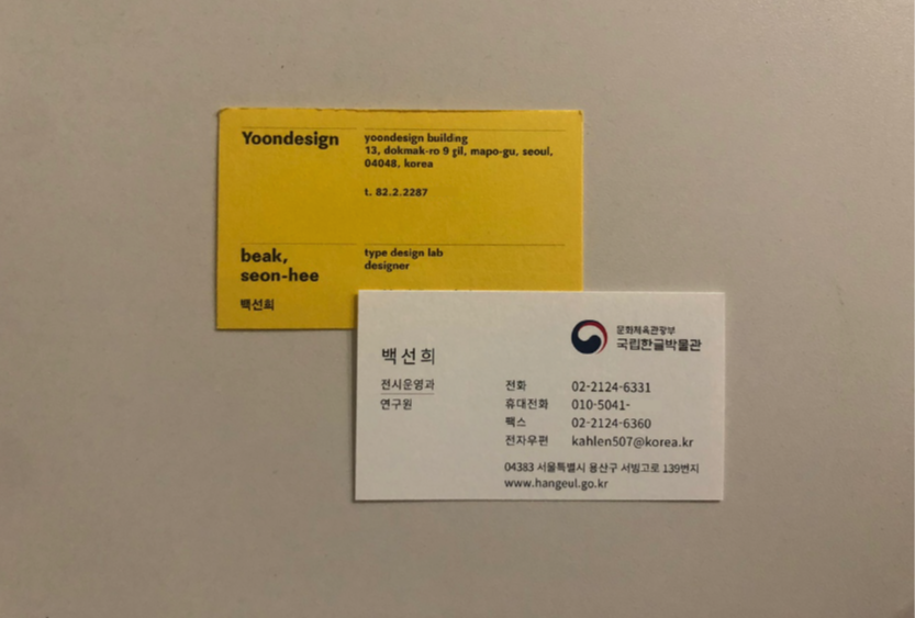 노란색 명함과 새로운 명함을 나란히 올려두어 봤다.
