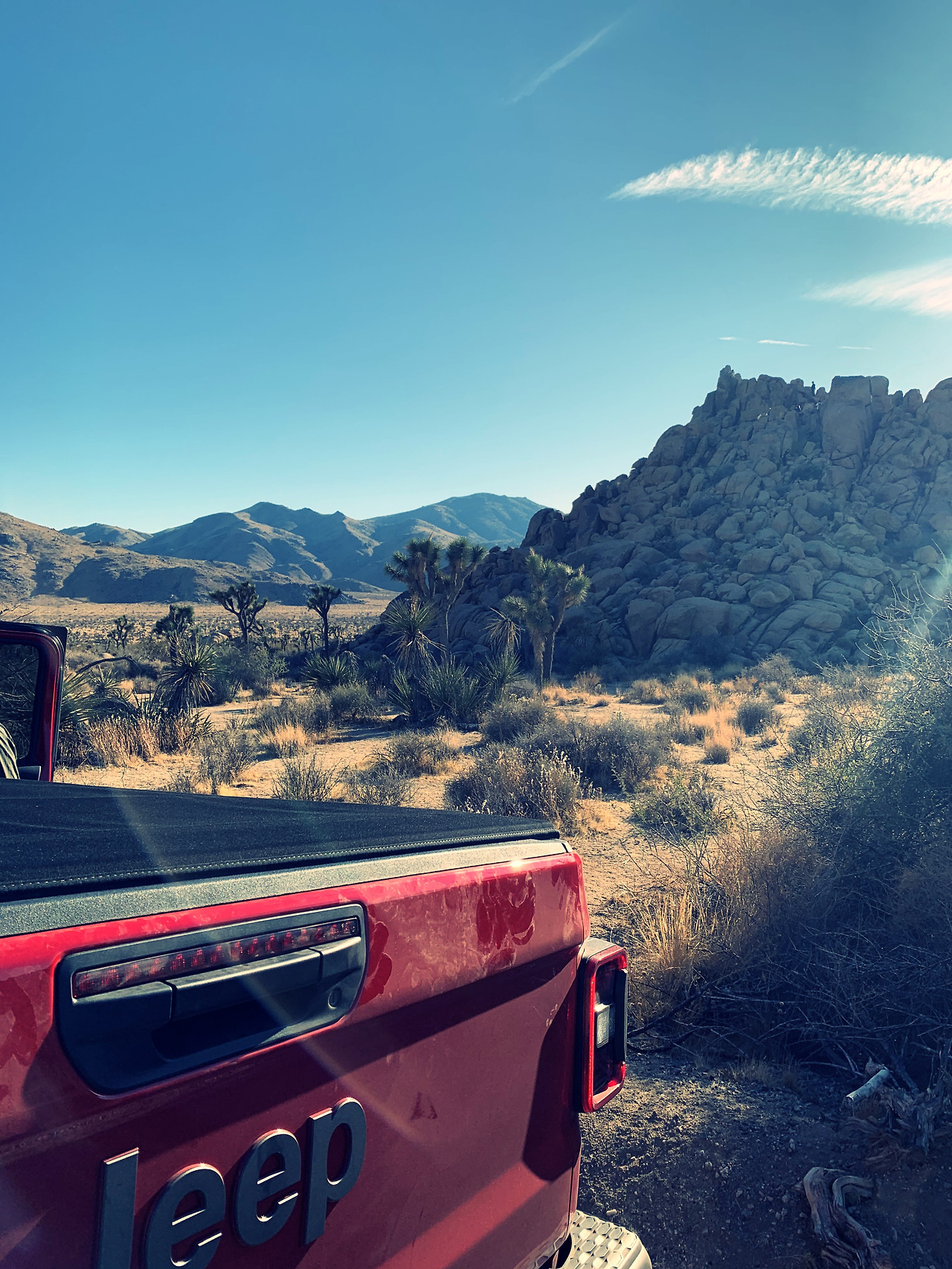 인생의 잊지 못할 순간을 꿈꾸며 우리는 달렸다. LA에서 동쪽으로 약 290km. 서울에서 대구 가는 거리 정도이니, 1박 2일 코스로 다녀오려면 새벽부터 움직여야 했다. 새벽 5시, 졸린 눈을 비비며 운전석에 올랐다. 오늘 두 다리가 되어 줄 차는 붉은색 지프 글래디에이터. 지프를 대표하는 모델인 랭글러의 바디를 늘려 적재공간을 확보한 픽업트럭이다. 한국에서도 기다리는 사람들이 많은 마니아들에게 인기가 좋은 모델. 다만 이 차는 루프를 떼었다 붙였다하기 쉽게 루프가 천과 비닐 소재로 되어 있어, 장거리를 고속으로 달릴 때에는 풍절음 때문에 때때로 귀가 먹먹해졌다. 하지만 눈 앞에 펼쳐진 이국적인 풍경을 감상하고 사진에 담느라 그 누구 하나 불만을 토하는 사람이 없었다. 일상적인 시각에서 보면 불만인 모든 상황들이 '여행'이라는 이름 안에서는 한 없이 너그러워진다는 것 이미 우리 마음에 여유라는 단어가 들어선 모양이다.