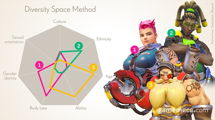 캐릭터의 인종, 민족성, 출신 문화권, 신체적 장애, 성 정체성, 체형 등 일련의 소수자적 스테레오타입 요소들에 각각 점수를 매겨 다양성을 측정하고 제작 환경에 반영하는 블리자드의 다양성 영역 체계 Diversity Space Method는 오늘날 PC주의자들이 추구하는 '다양성'의 전형을 보여준다. 과거의 인종학, 골상학적 분류를 떠오르게 하는 이와 같은 체계는 오늘날 진보적(이라 일컬어지는) 미디어 비평 담론의 핵심을 이루며, 이처럼 노골적으로 수치화되어 표현되는 경우는 드물지만, 그럼에도 본질적으로 동일한 메커니즘이 여타의 미디어 매체 일반에 적용되고 있다. 이에 따르면, 작품의 완성도는 그것이 얼마나 높은 수준의 다양성을 체현하고 있는가, 즉, '백인' '남성' '엘리트'의 성공 신화로 대표되는 정상성이라는 지배적인 척도로 부터 얼마나 거리를 두고 있는지에 따라 결정적으로 측정된다. 그러한 비평적 척도가 너무나도 지배적이게 된 나머지, 작품의 사실성, 개연성, 세계관 내부의 논리를 훼손하면서까지 소수자적 정체성을 지닌 배역을 인위적으로 작품 내에 할당하는 기획, 연출의 기조가 만연하게 되었다. 따라서 오늘날 소수자적 정체성이 오히려 작중 다수로서의 전형을 이루거나 그러한 정체성 자체가 맹목적으로 과시되는 작품을 찾아보기는 어렵지 않다.