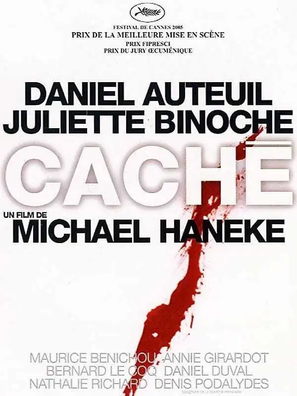조르주와 안느는 배송된 영상에 전제된 의도와 감시적인 뉘앙스에 대해 만성적인 불안을 표출하지만, 기실, 배송되는 영상들은 두 주연에게 어떠한 요구 사항도 전달하고 있지 않으며, 감시의 의도가 있다 보기에도, 지나치게 고정된 시선을 고수하고 있다. 영상의 포커스는 인물과 그 행동을 따라 특정적으로 이행하지 않고, 그보다는 넓은 시야에서, 단지 그, 그녀가 있는 공간을 대략적으로 지향하고 있을 뿐이다. 영화의 후반부, 마지드가 조르주의 앞에서 목을 그어 자결하는 장면에서도, 영상의 초점은 그러한 이벤트 자체에 보다는 전반적인 공간에 맞추어져 있다. 카메라의 시선이 뒤따르지 않기 때문에 조르주는 그저 화면 밖으로 걸어나가는 것으로, 매번 간단히 화각을 이탈할 수 있었다. 즉, 영상은 각개의 인물을 특별히 다루지 않는다. 지시하지 않는다. 오히려 그를 의도적으로 외면하고, 도외시한다. 그럼에도 그것이 인물들에게 모종의 불안을 야기하게 되는 건, 그들 자신만은 고정된 화각 안에서 자신의 적확한 실상을 그려낼 수 있기 때문이다.