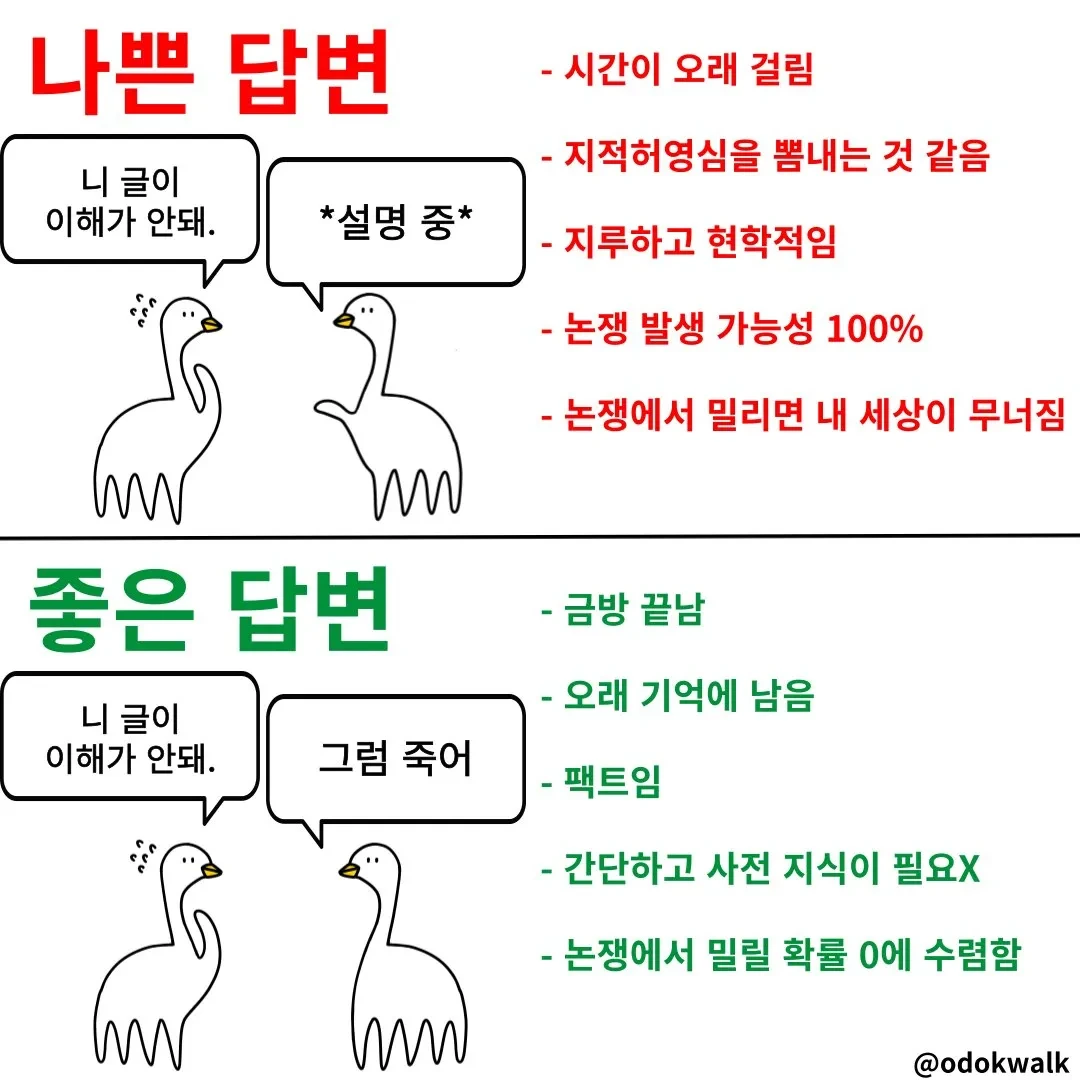 서로 생각이 다른 사람들끼리 지난하게 의견을 나누느니, 그냥 상대방에게 죽으라고 면박을 주는 게 낫다고 말해지는 건 사실이 그렇기 때문이다. 그러한 논쟁은 이겨도 실익이 없고, 만에 하나 지기라도 하면, 그 모멸감을 이겨내기 어렵다. 이겨도 세상은 바뀌지 않는데, 단지 패배를 면하고 알량한 자존심을 지키기 위해 에너지를 쓰는 일이 무슨 의미가 있겠는가. 누구나 각자의 커뮤니티에서 동류의 사람들끼리 모여사는 것이 자연스러운 요즘같은 세상에서는 더욱 그렇다. 관용의 미덕을 발휘하기는 어렵지만, 관용을 베풀 필요도 없는 환경을 만들기는 쉽다. 오늘날 우리는 철저히 우리 자신의 선택에 따라 관계를 형성하고 끊어낼 수 있기 때문이다.