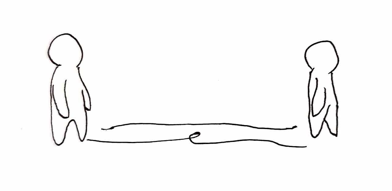2번 그림이다. 1번과 달라진 것은 끈의 두께이다. 1번과 비교했을 때, 2번의 끈은 두껍고 튼튼한 끈으로 바뀌었다. 이는 두 사람 사이에 충분한 친밀감과 신뢰가 누적되었다는 증거이다. 끈이 강해진만큼 서로를 잘 알고 있다고 해석할 수 있으나, 무거워진 만큼 서로의 관계에 신중을 가해야 한다는 의미로도 해석할 수 있다. 이때부터는 단순히 스치듯 아는 관계가 아니라 서로의 인격을 이해하고 있는 관계이기 때문이다.