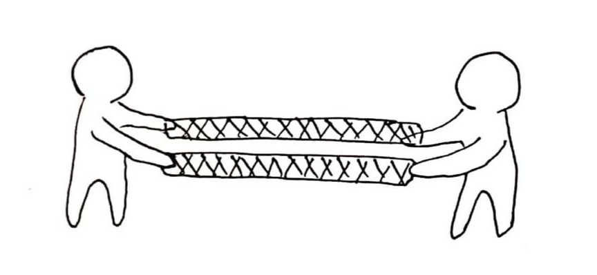 관계에 경중에 따라서 저 끈의 두께와 모습은 얼마든지 다르게 표현할 수 있다. 지금 알고 있는 인간관계를 대입해보는 것도 좋을 것이다. 다양한 인간관계가 있지 않겠는가? 아는 친구에서 베스트 프렌드로 깊어지는 과정, 모르던 이성과 연인으로 발전하는 것, 더 나아가 부부가 되는 모습 등 여러 관계에 이 그림을 적용해볼 수 있다. 높은 신뢰도가 요구될수록 저 믿음의 끈은 튼튼해지고 또 동시에 무거워질 것이다.