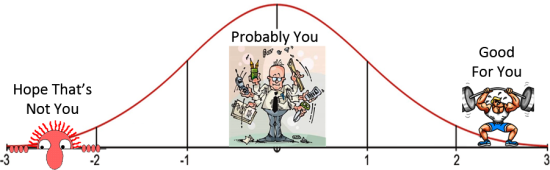 여기까지 읽었을 때 ‘음 이건 내 이야기가 아닌데? 난 달라’라고 생각할지도 모른다. 나는 표준 편차의 중간값을 이야기하고 있다. 만약 당신이 이 값으로부터 2-3 표준 편차 내에 위치한다면 당신 이야기가 맞다.