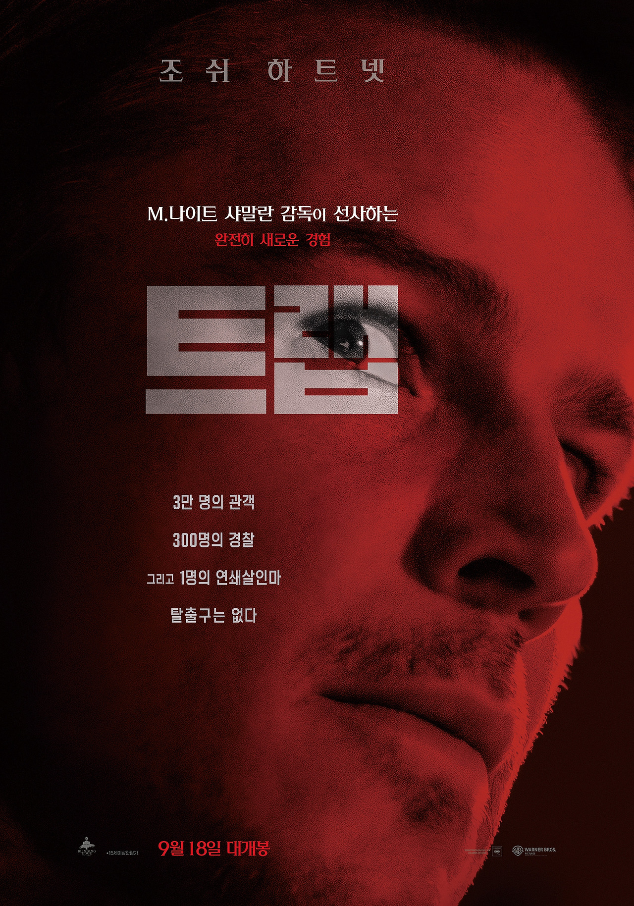 <트랩(Trap)>은 전통적 스릴러를 계승하면서도, 장르의 관습을 새롭게 해석한 흥미로운 영화이다. 연쇄살인마 ‘도살자’(조쉬 하트넷)가 주인공인데 ‘도살’에 상응하는 폭력적이고 피범벅인 장면이 없다. 처음부터 끝까지 긴장감을 유지하며, 캐릭터, 특히 도살자의 심리적 변화를 섬세하게 추적한다. 이런 영화에 반전은 필수적인데, 예상치 못한 방식으로 반전을 배치해 관객을 도발한다. 관객의 반응은 엇갈릴 수 있다. 예상치 못한 방식에서 쾌감을 느낄 수 있는가 하면 욕구불만을 표명할 수도 있다.