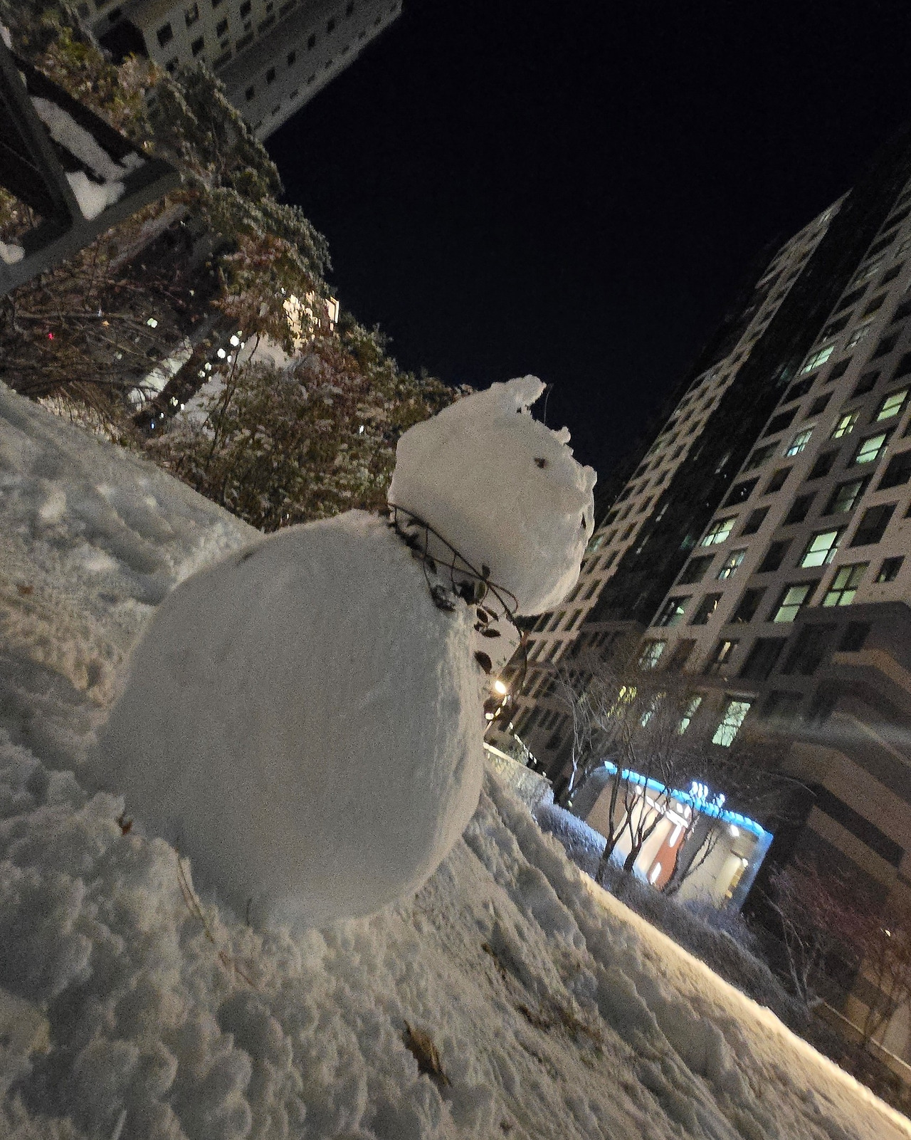 매년 큰 눈이 내리면 우리 집 식구들은 나가서 눈사람을 만든다. 돈도 특별한 기술도 필요 없는 우리 가족만의 소소한 겨울 리추얼. 올해는 첫눈으로 만드는 눈사람이라 꽤 특별하게 느껴진다.